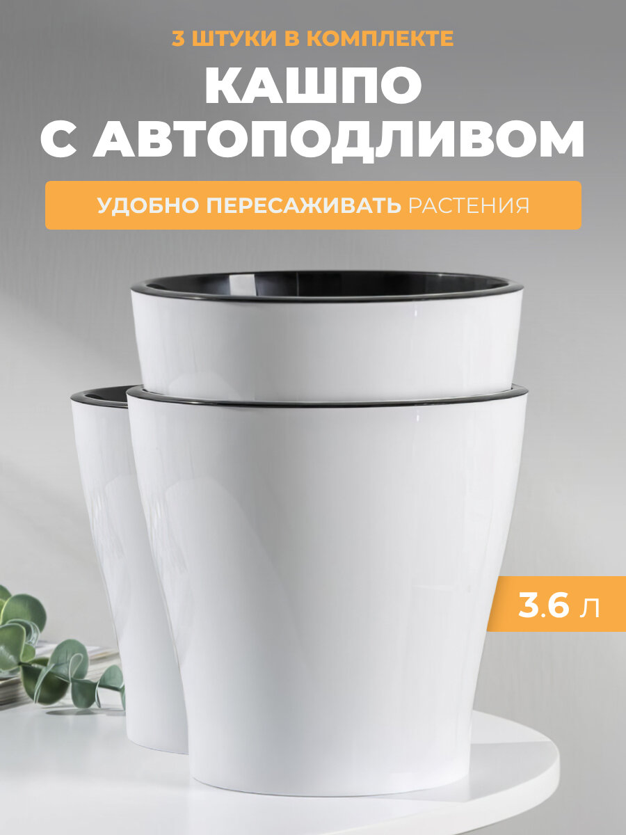Купить Кашпо набор для цветов 3,6л горшок для цветов с автополивом 3 шт.