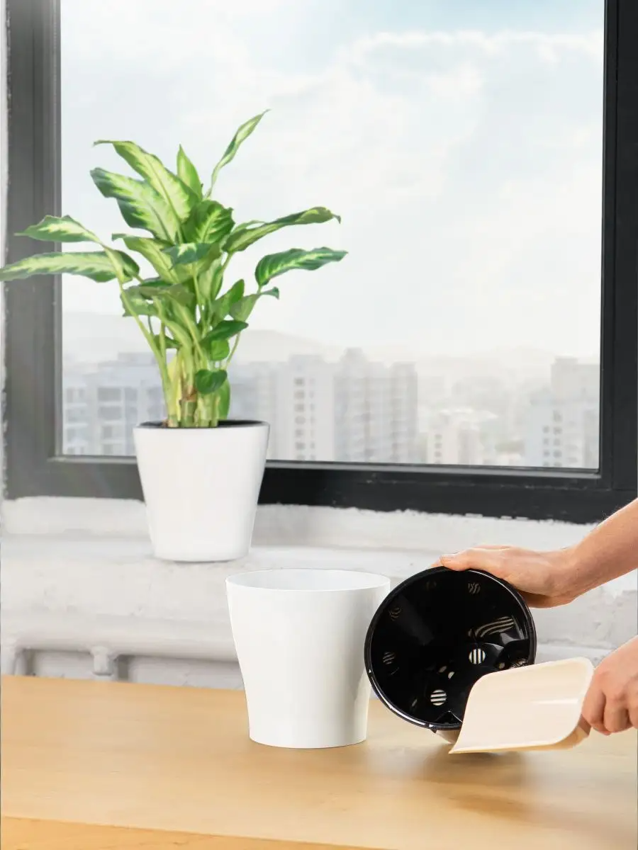| Описание | Горшок цветочный с дренажной вставкой позволит забыть про залитые подоконники, про перелитые и засохшие цветы. |
