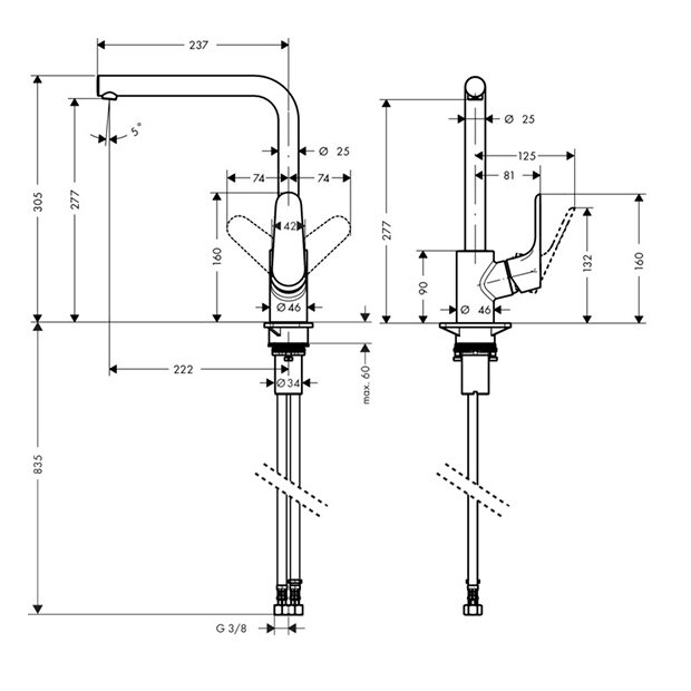 | Высота излива | 277 мм |
