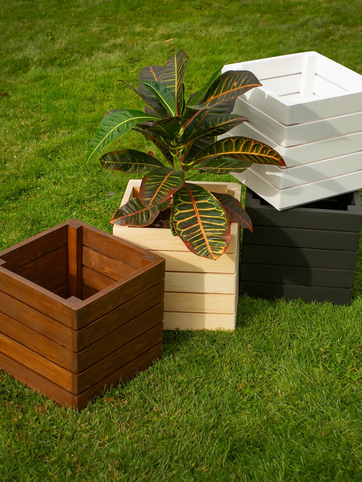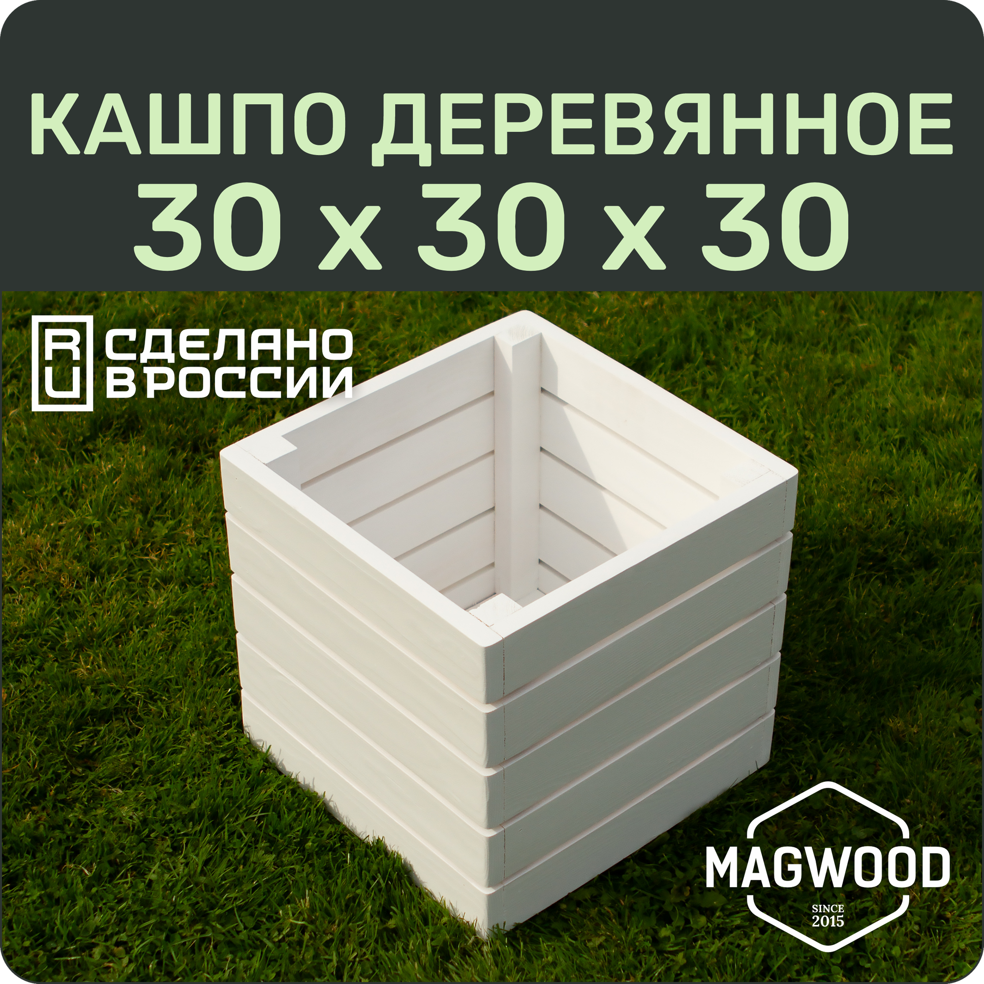 Деревянное кашпо для цветов и растений 30х30см цвет белый иней интересное: