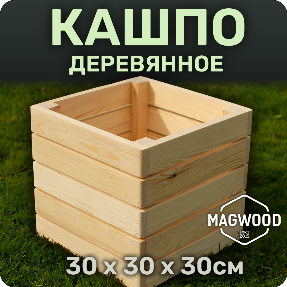 Деревянное кашпо для цветов и растений 30х30см интересное: