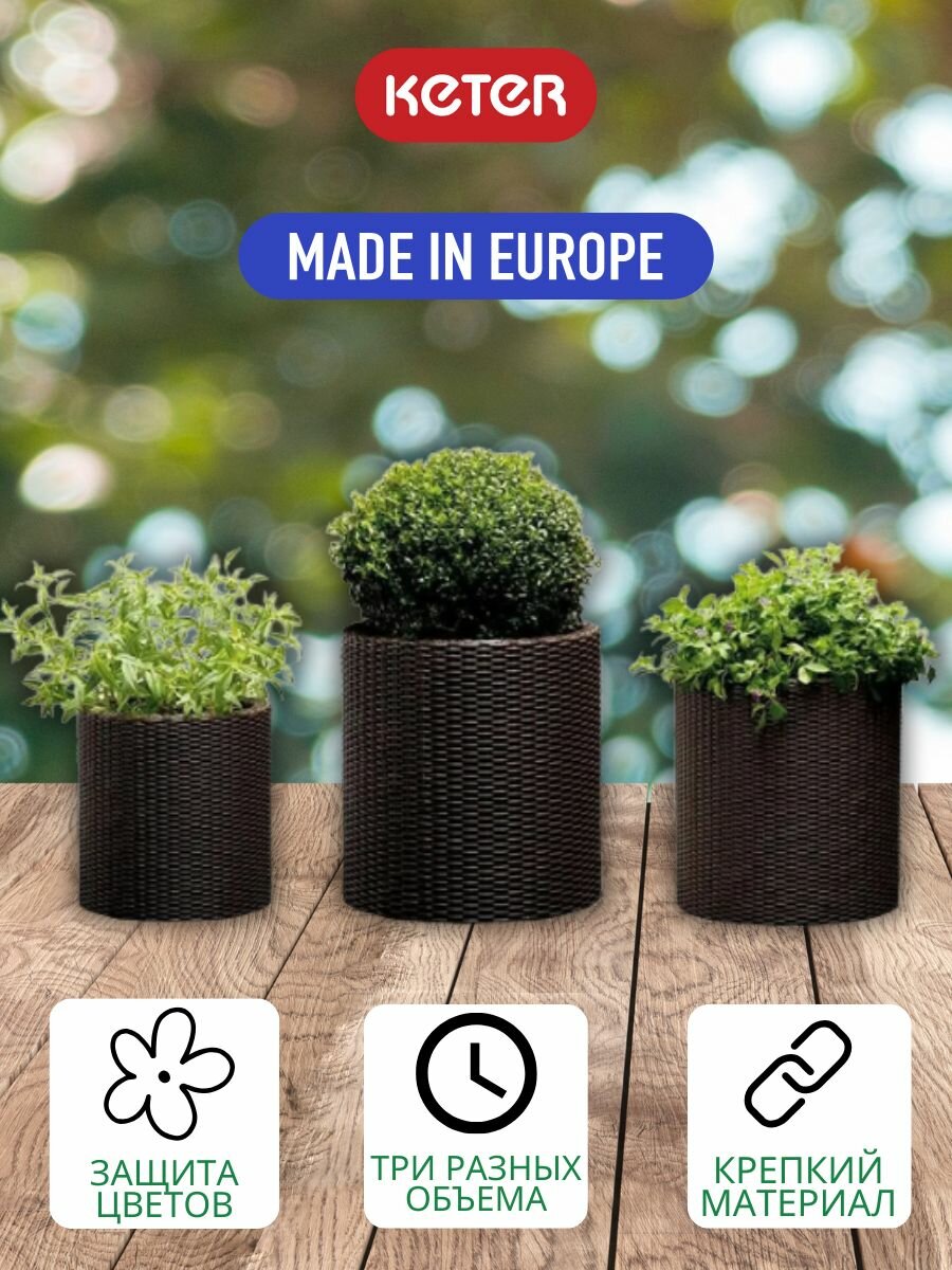 СохранитьЦилиндрическое кашпо под ротанг Keter 3 шт. коричневый интересное: