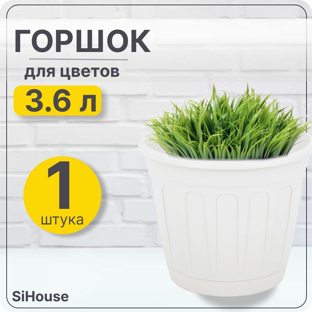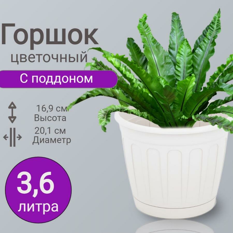 Горшок для цветов Альтернатива Дионис, с поддоном, 3,6 л, белый