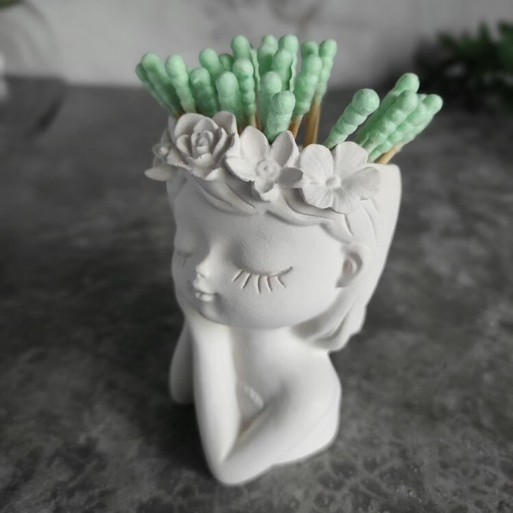 Кашпо статуэтка Девочка с цветами со стабилизированным мхом
