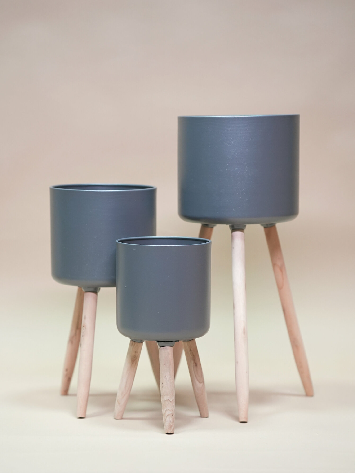 Купить Набор кашпо из кованого железа (3 шт: 54х23, 42х20, 32х17 см), цвет серый