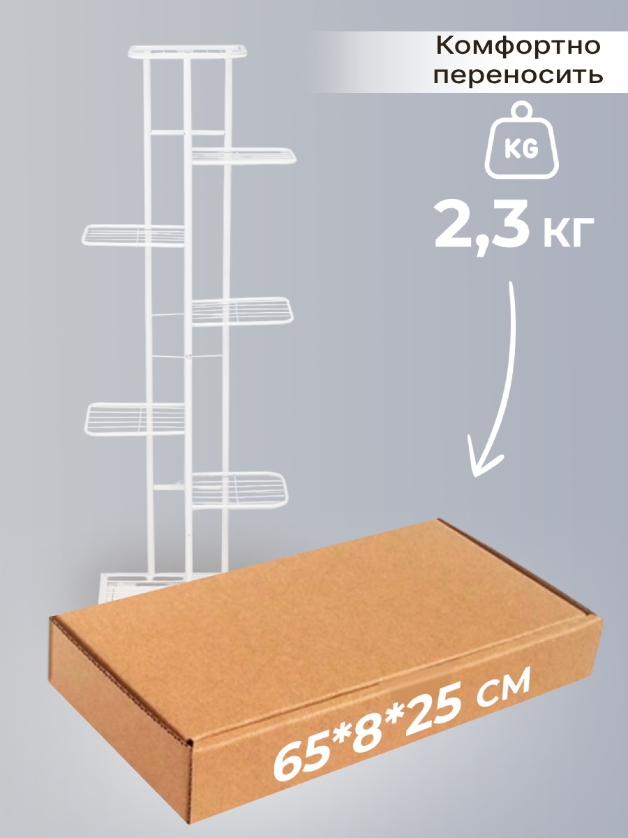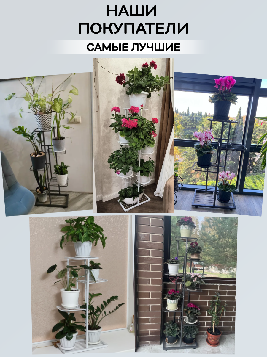 СохранитьRombiLux Подставка для цветов металлическая высокая напольная или на подоконник, на 8 кашпо, белая интересное: