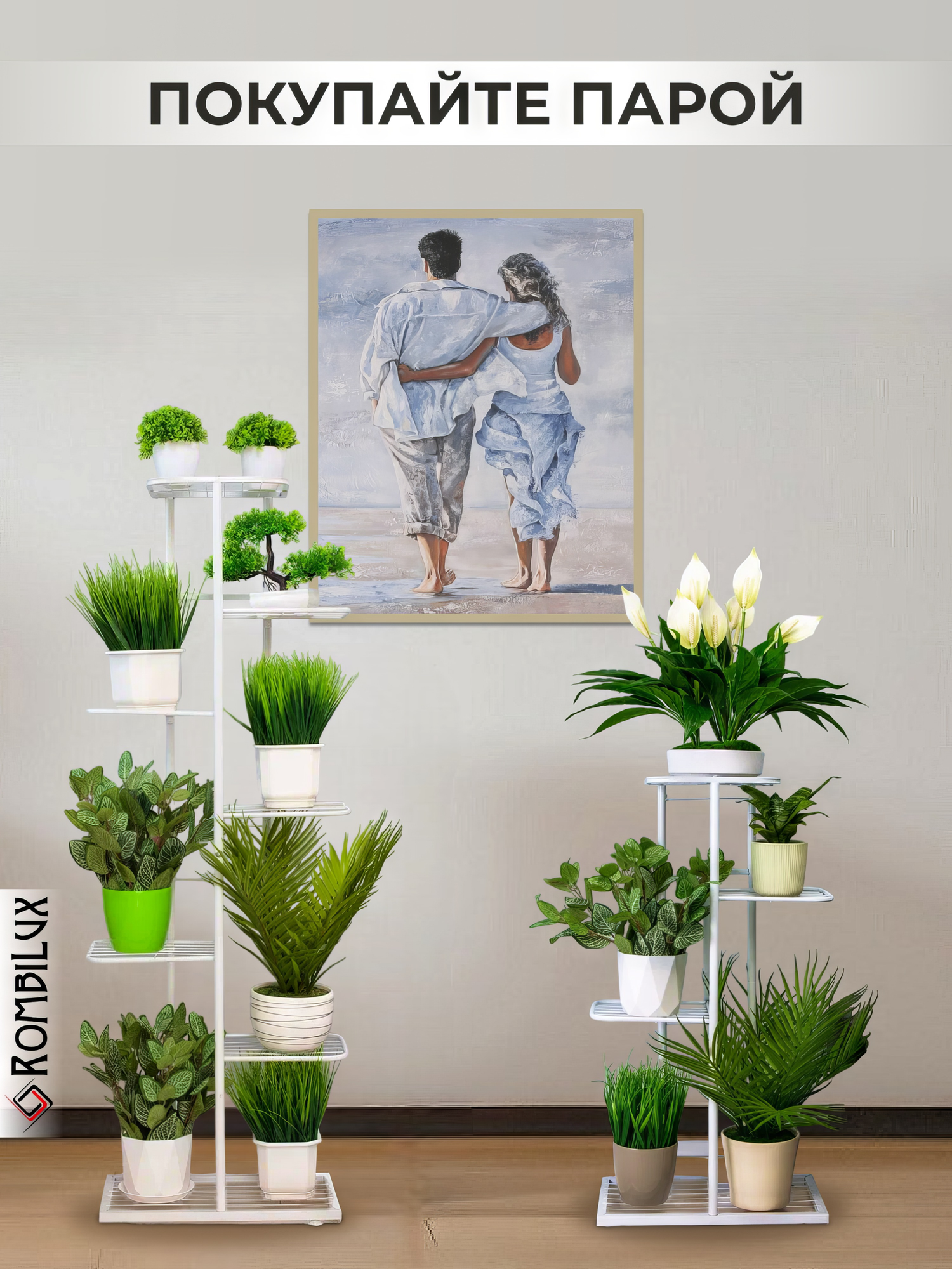 Ниже Вы можете прочитать отзывы на RombiLux Подставка для цветов металлическая высокая напольная или на подоконник, на 8 кашпо, белая, ознакомится с подробными характеристиками, посмотреть интересные обзоры и фотографии на RombiLux Подставка для цветов металлическая высокая напольная или на подоконник, на 8 кашпо, белая.