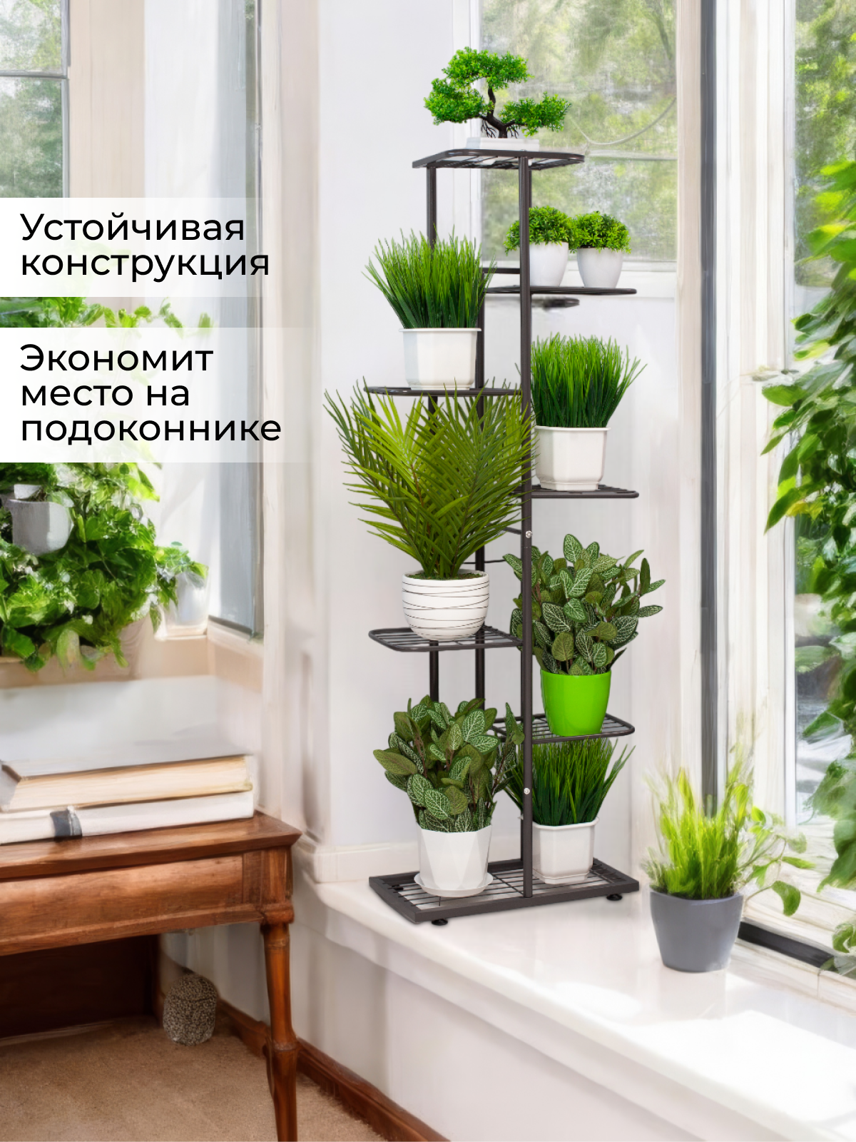 СохранитьRombiLux Подставка для цветов металлическая высокая напольная, на подоконник, на 8 кашпо, серый графит интересное: