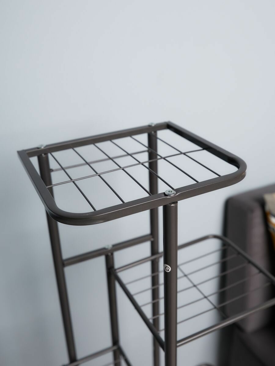 Подставка для цветов металлическая высокая напольная, на подоконник, на 8 кашпо, серый графит