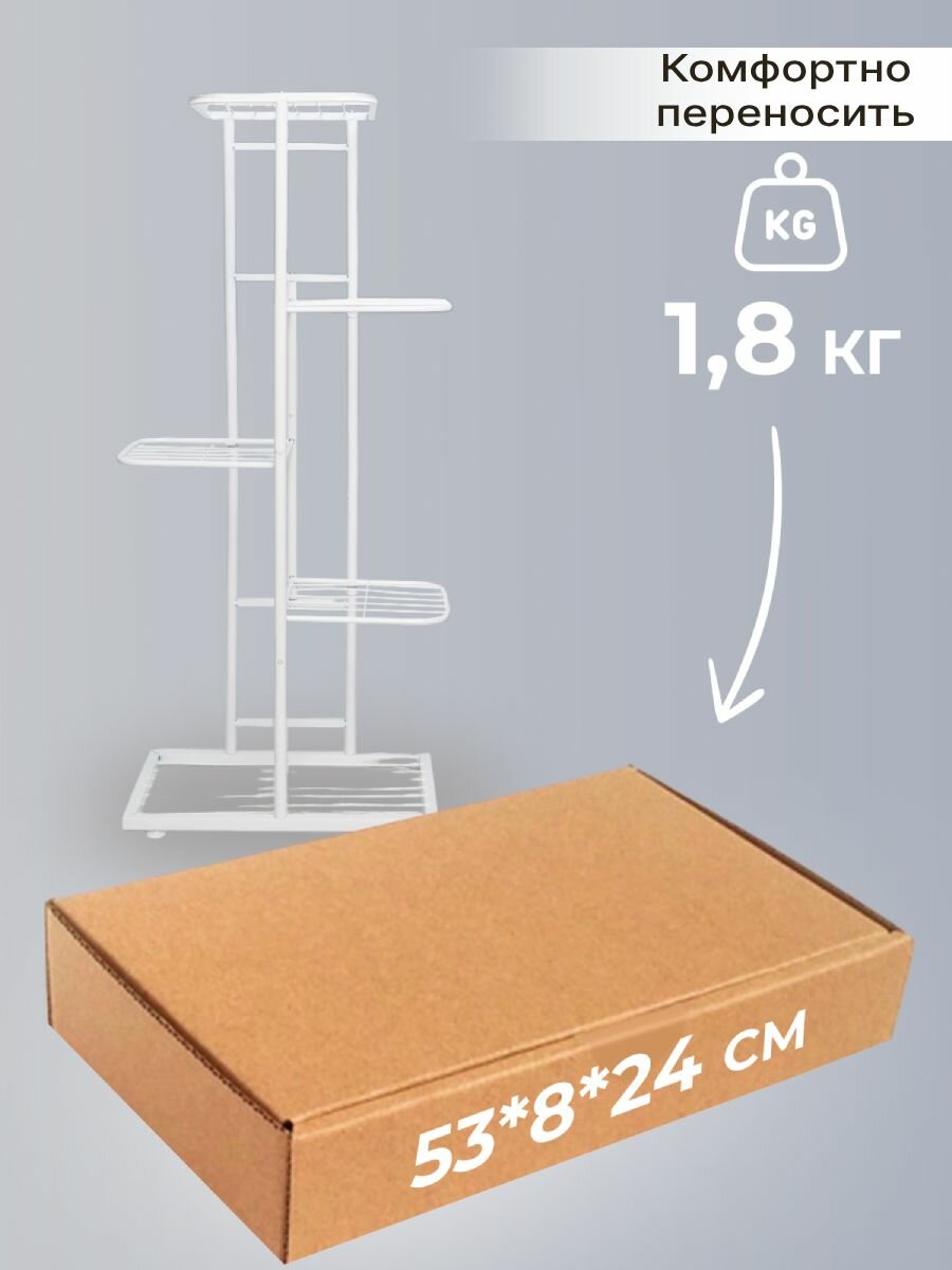 Подставка для цветов RombiLux, металлическая, напольная, на подоконник, белая, на 8 кашпо