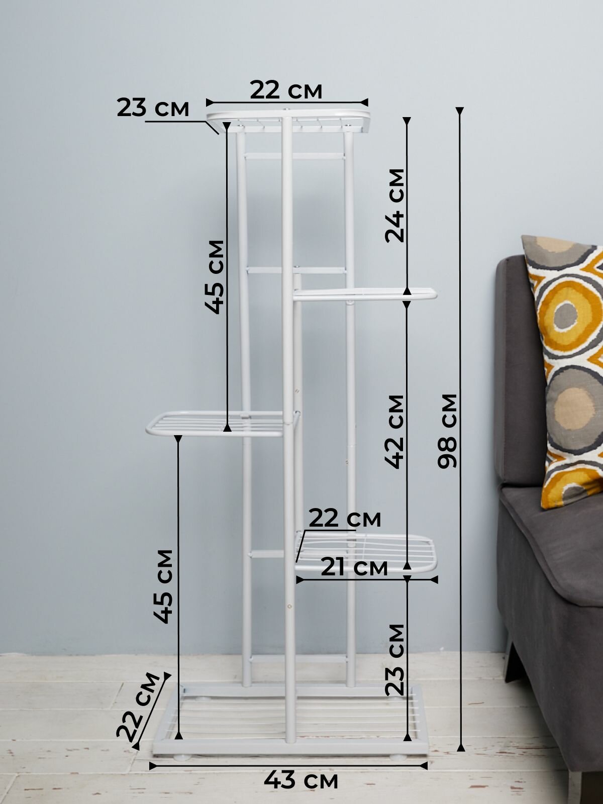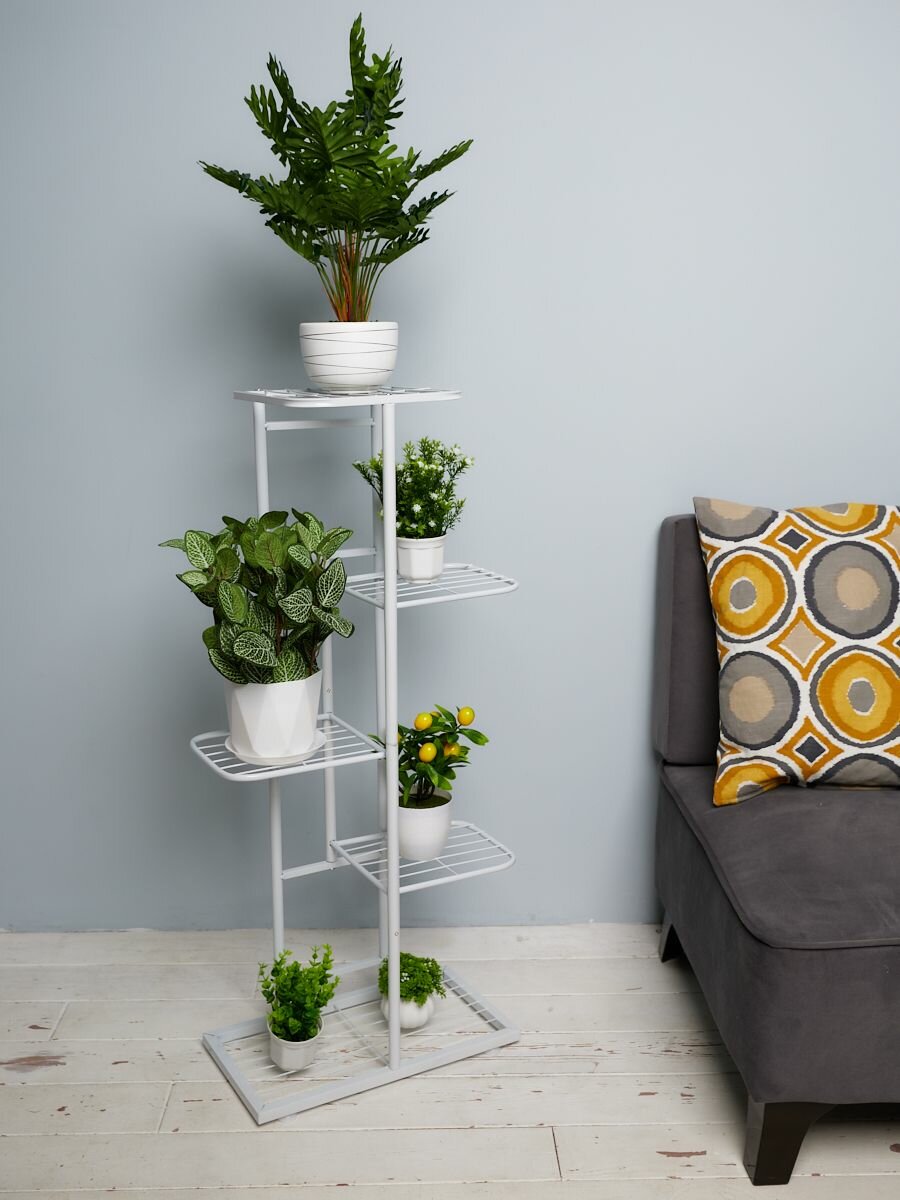 Купить RombiLux Подставка для цветов металлическая напольная или на подоконник, на 6 растений, белая