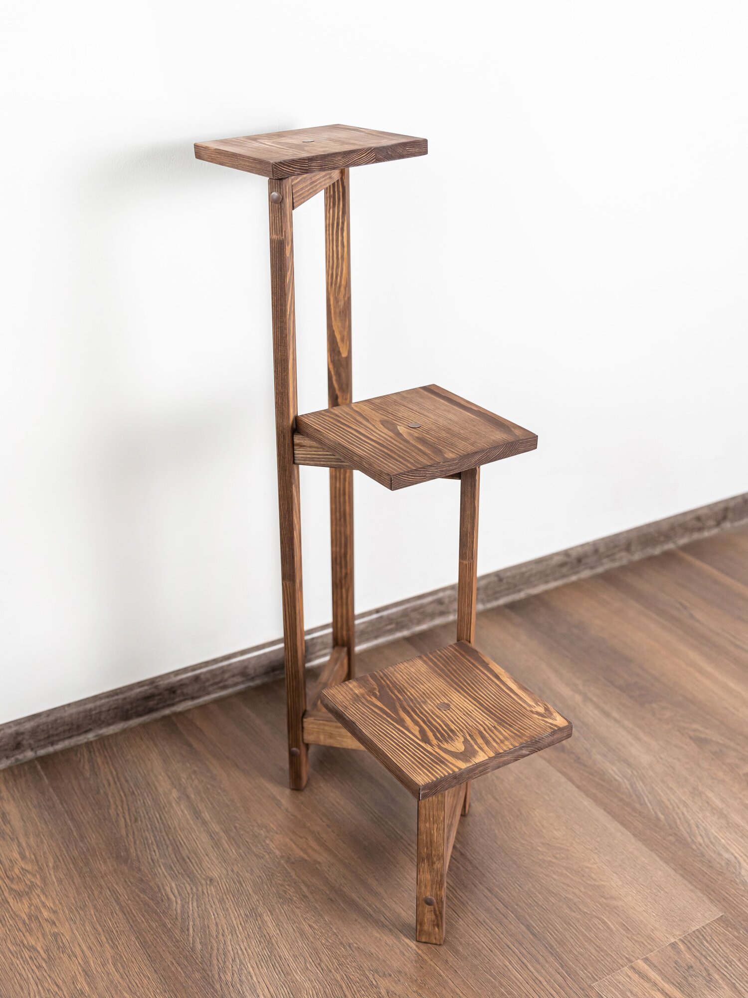 Подставка для цветов напольная деревянная, темно-коричневая, 3 квадрата интересное:
