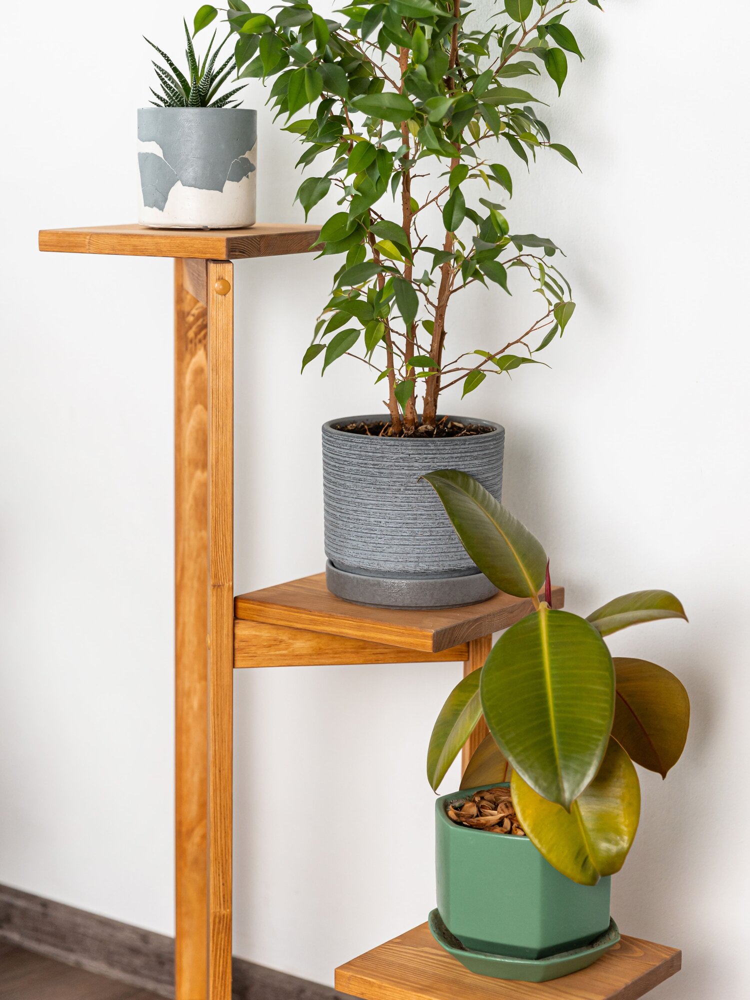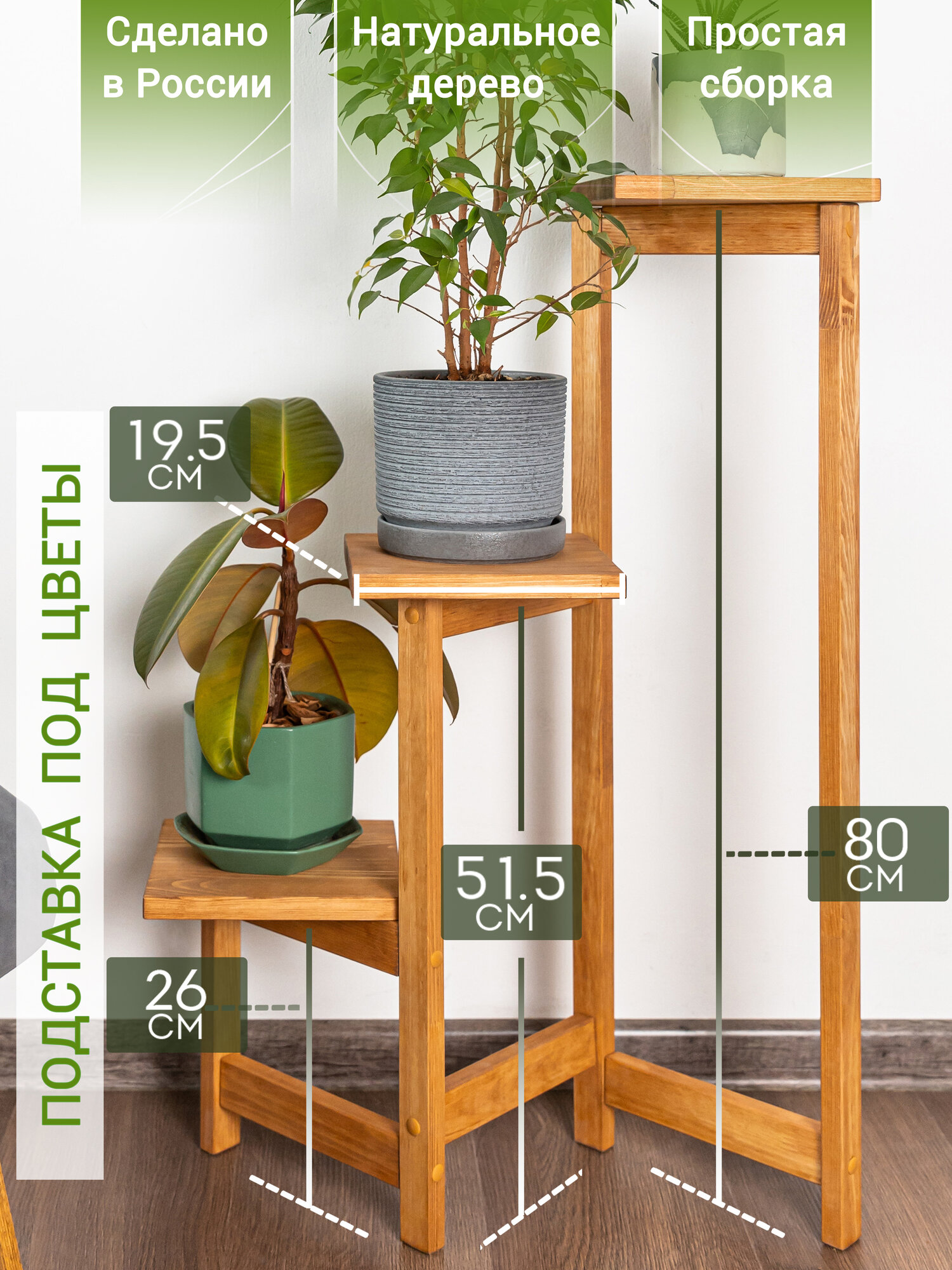 Подставка для цветов напольная деревянная, светло-коричневая, 3 квадрата интересное: