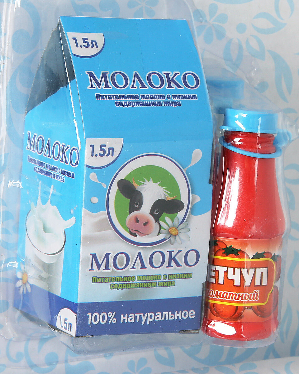 | Дополнительная информация | батарейки в комплект не входят; также в комплект входят: ключ, карточка, упаковка молока, бутылка воды 2 шт., кетчуп, банка сливок, упаковка бисквита, курица, кукуруза, перец, кредитная карта, бумажные деньги 7 шт., монеты 21 шт. |