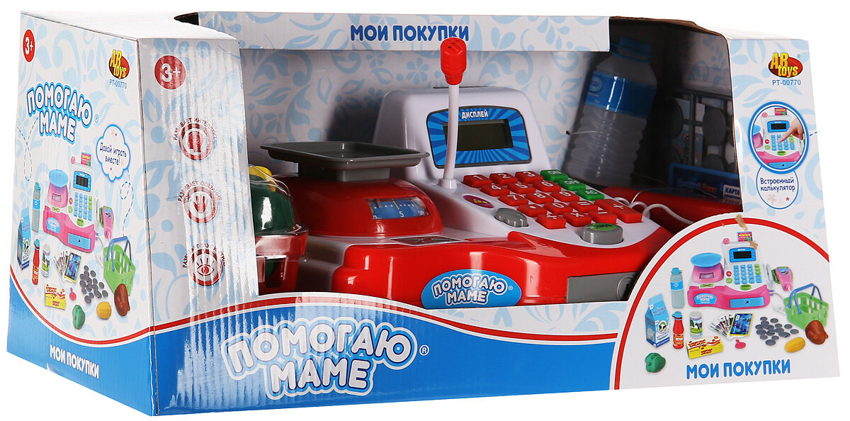 Купить Касса "Помогаю маме", в наборе с продуктами и аксессуарами, на батарейках, с эффектами