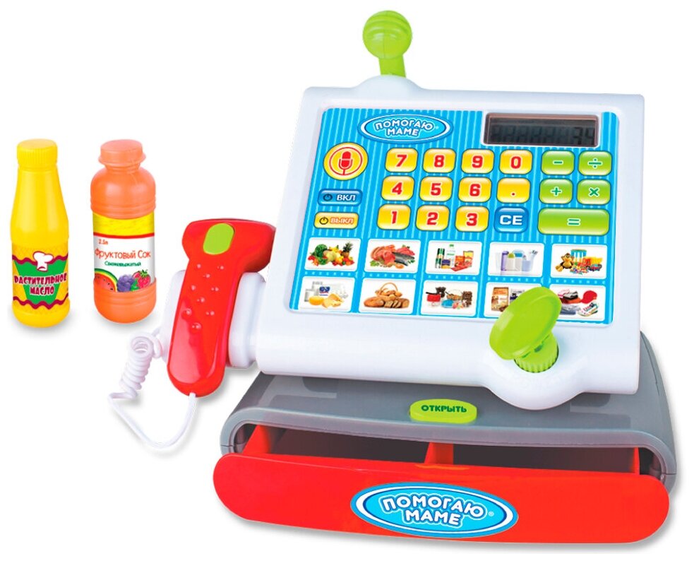 Купить Касса "Помогаю Маме", в наборе с продуктами, на батарейках, 13 предметов, с эффектами PT-00579