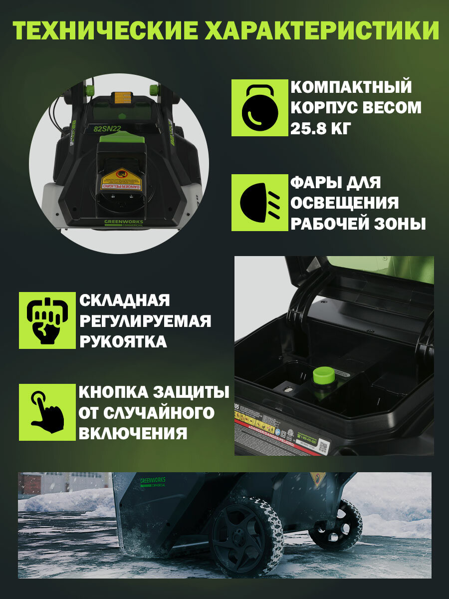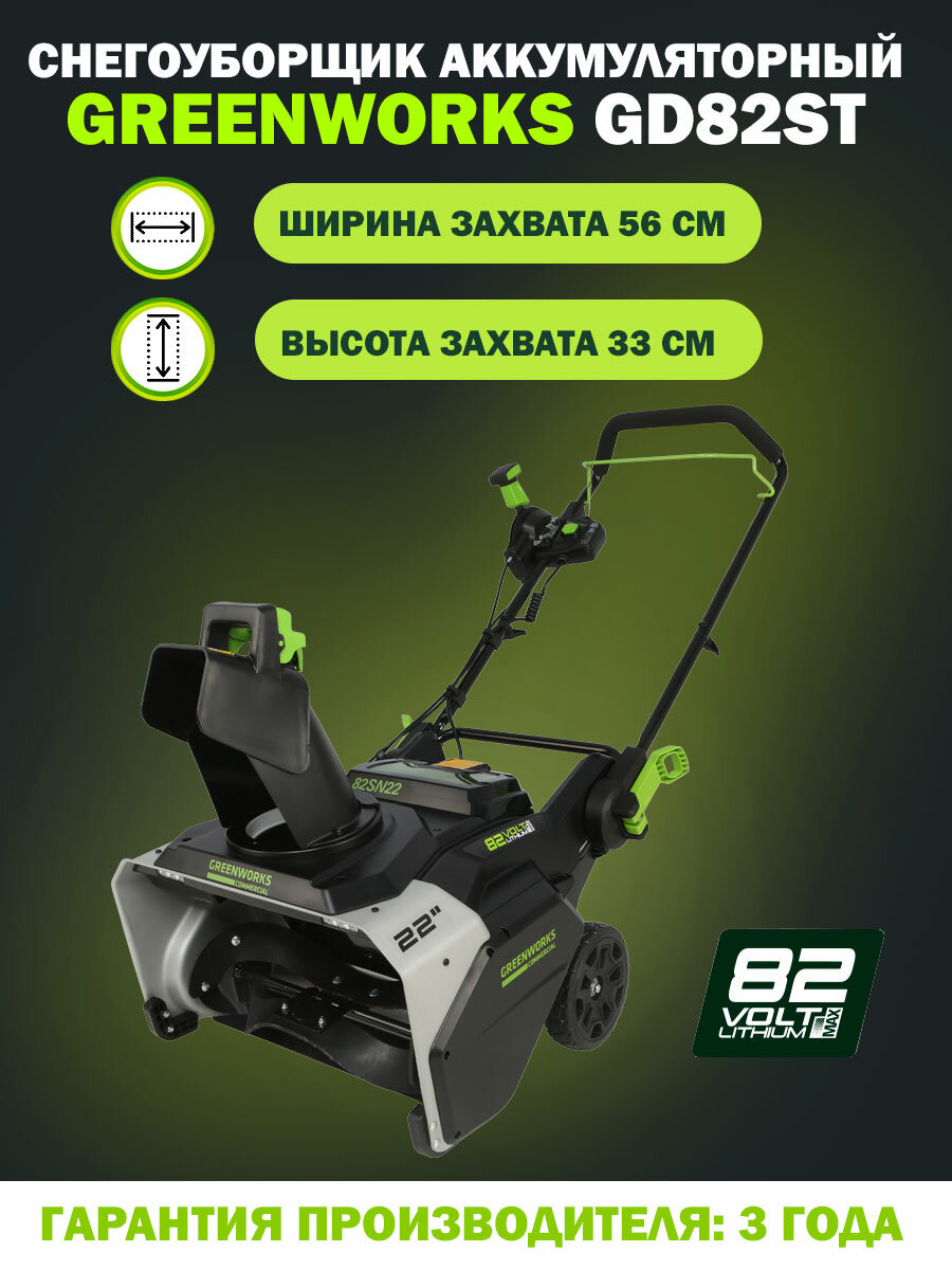 Снегоуборочник аккум. GREENWORKS GD82ST (82V, 56 см, бесщеточный, без АКБ и ЗУ) интересное: