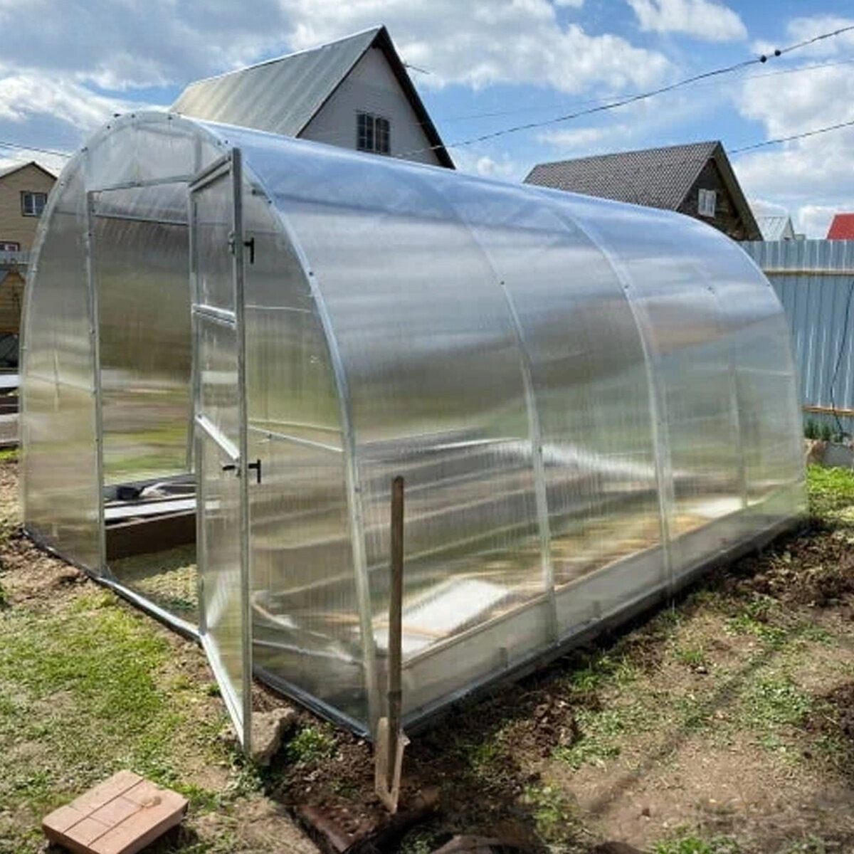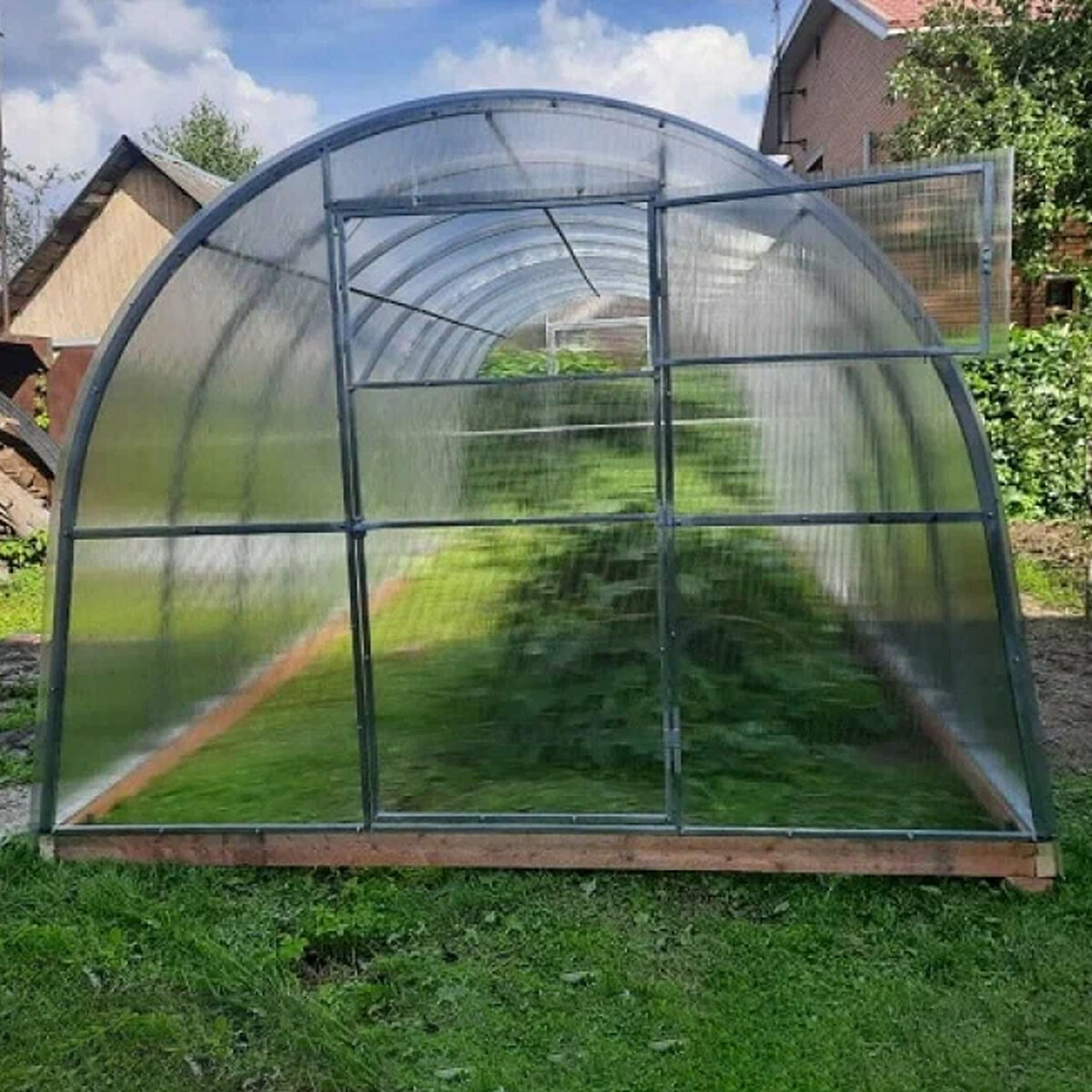 Теплица из поликарбоната 3x4 метра, усиленная дуга 40x20, оцинкованная, арочная, 2 двери и 2 форточки