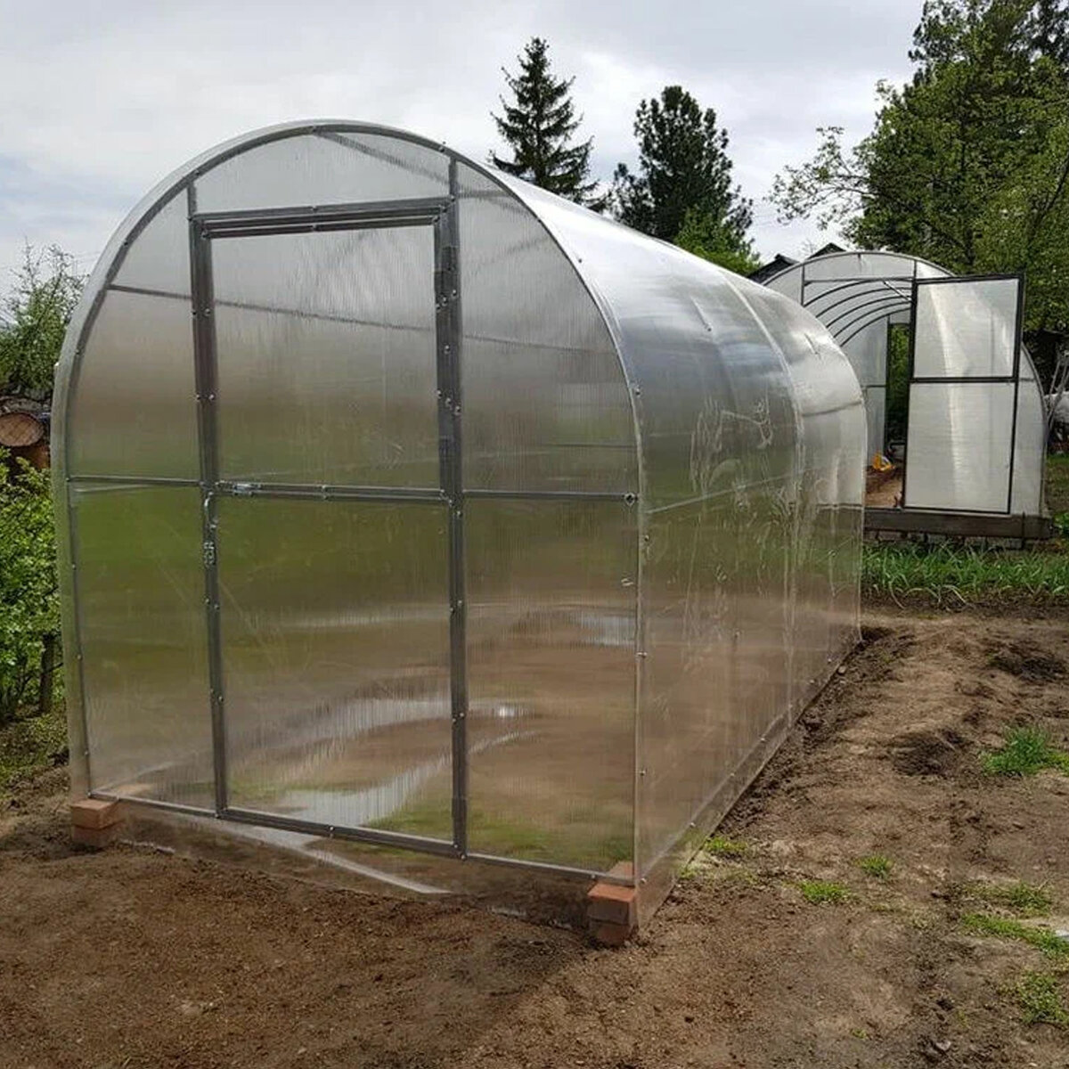 Теплица из поликарбоната 2.5 x 4 метра, арочная, оцинкованная труба, 2 двери и 2 форточки в торцах