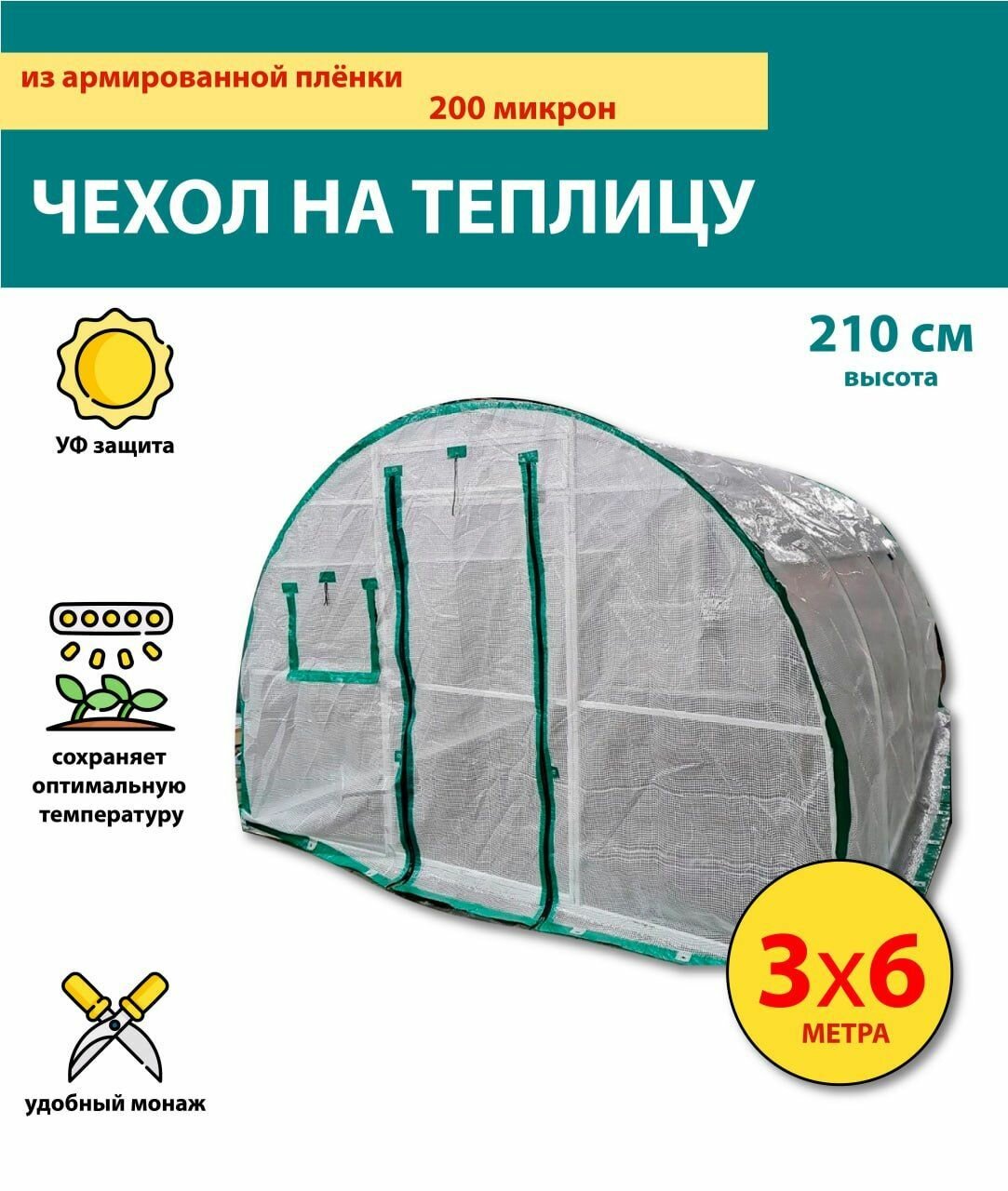 Купить Чехол на теплицу из армированной пленки 6х3х2.1 м, с уф-защитой, 2 двери и 2 форточки
