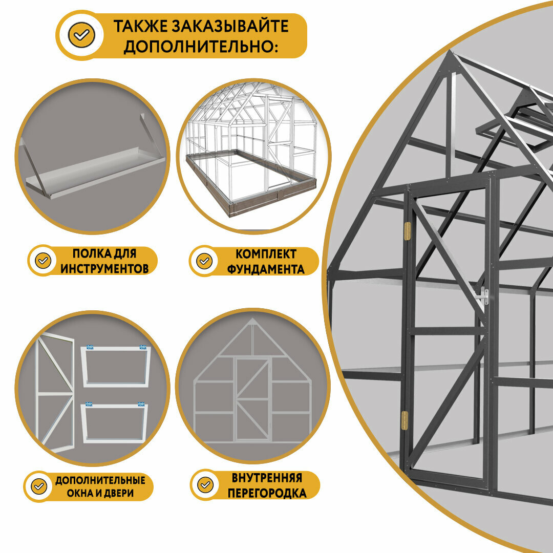 Теплица английская Челси 3х6 м (Каркас), цинковое покрытие без покраски интересное: