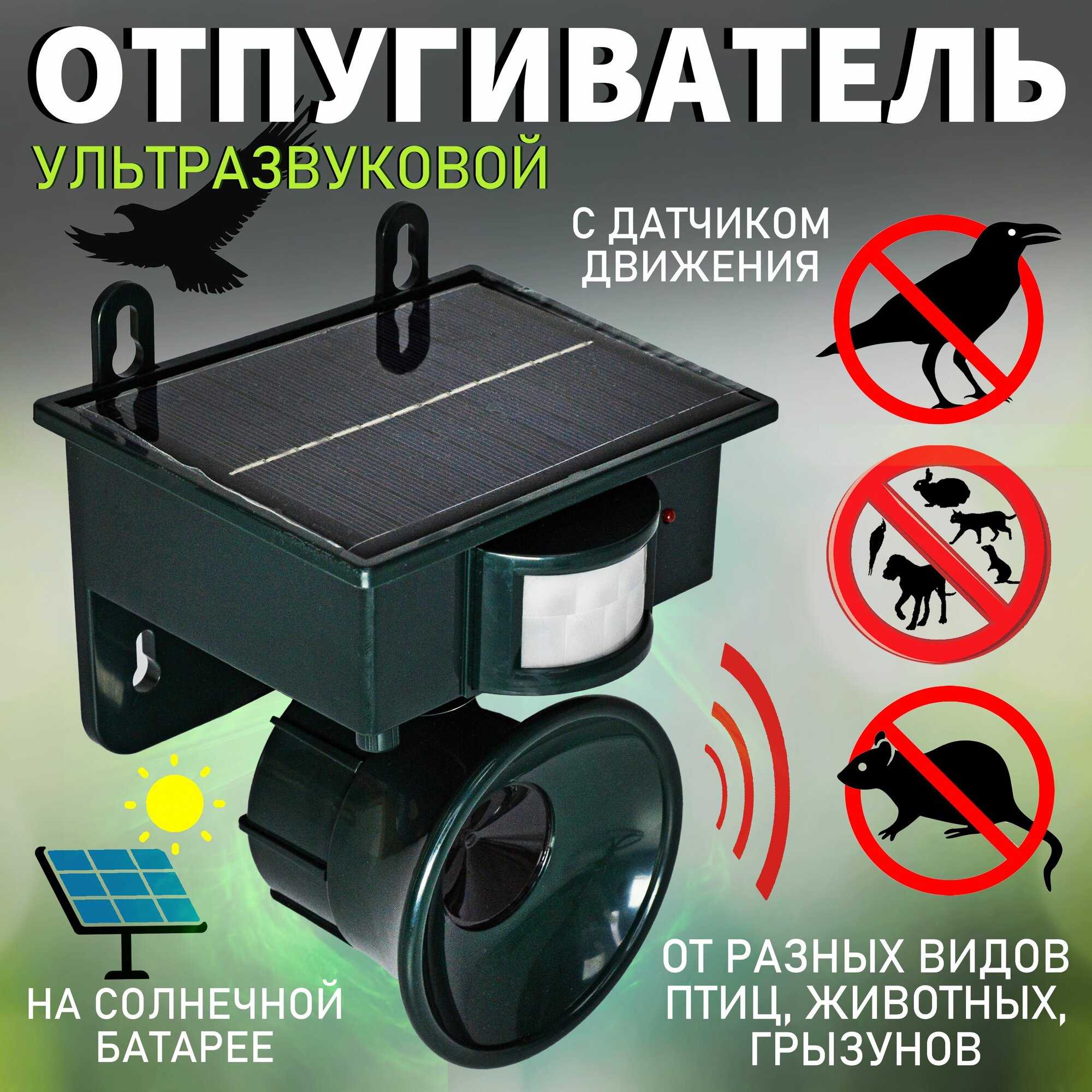 Отпугиватель ультразвуковой для животных и птиц наружный с датчиком движения на солнечной батарее интересное: