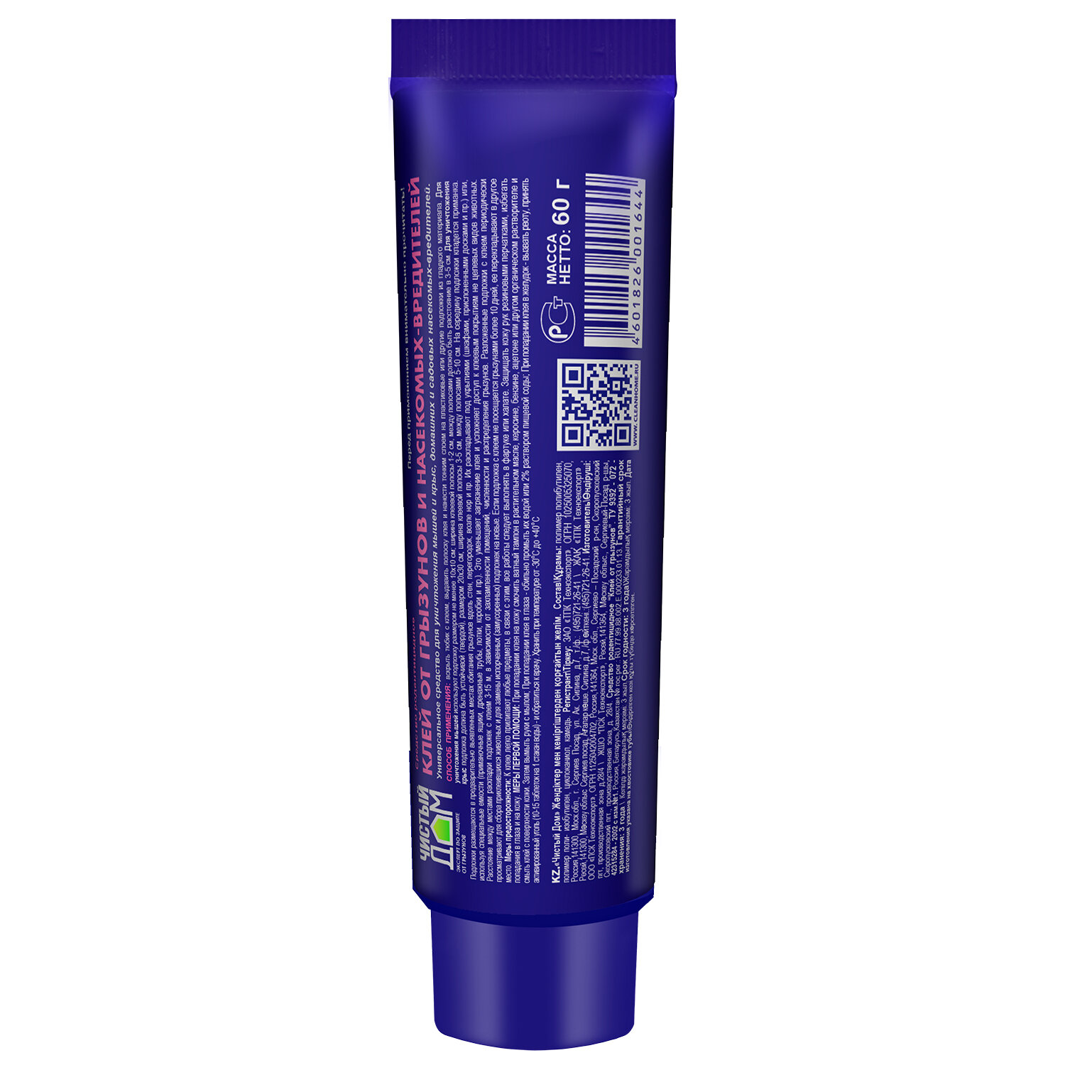Клей от грызунов и насекомых вредителей Чистый дом, туба 60 г