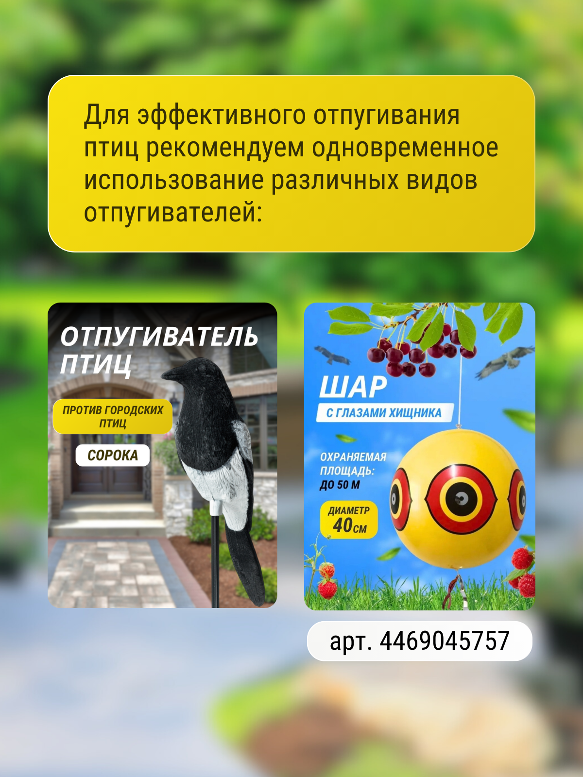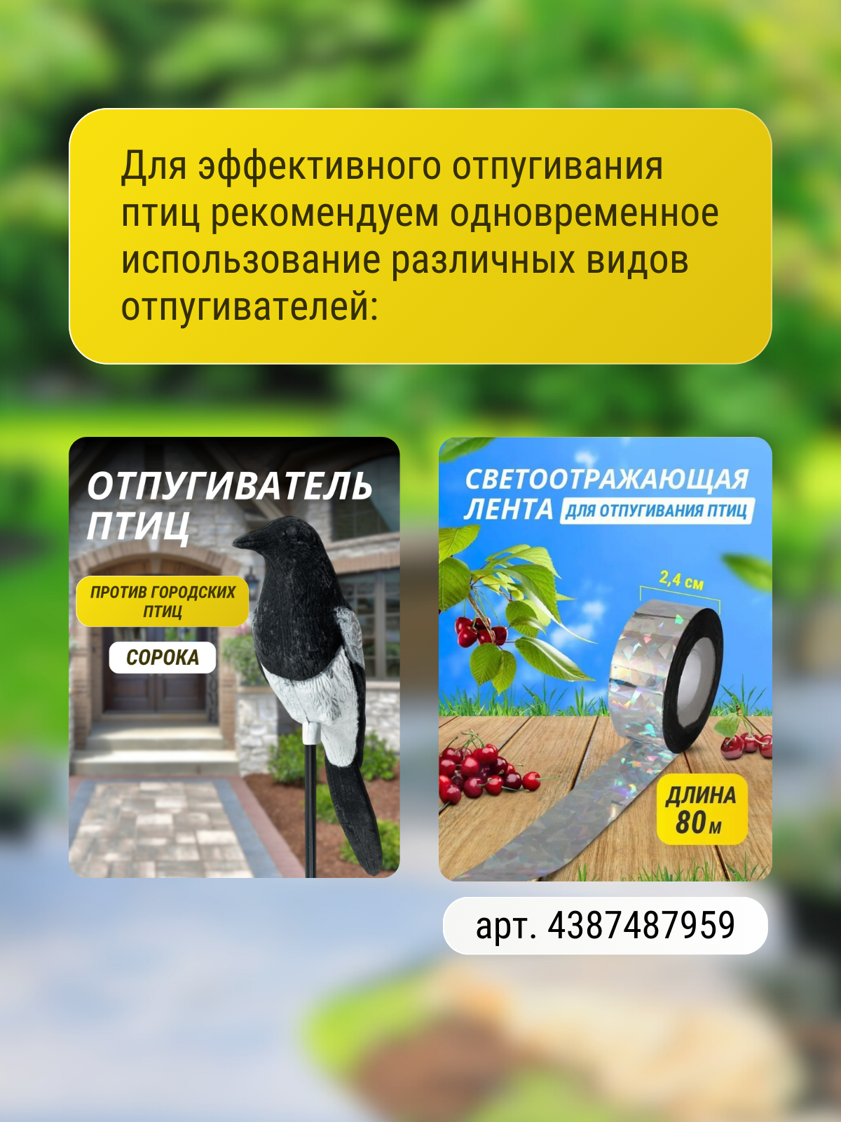 Ниже Вы можете прочитать отзывы на Отпугиватель птиц Сорока, ознакомится с подробными характеристиками, посмотреть интересные обзоры и фотографии на Отпугиватель птиц Сорока.