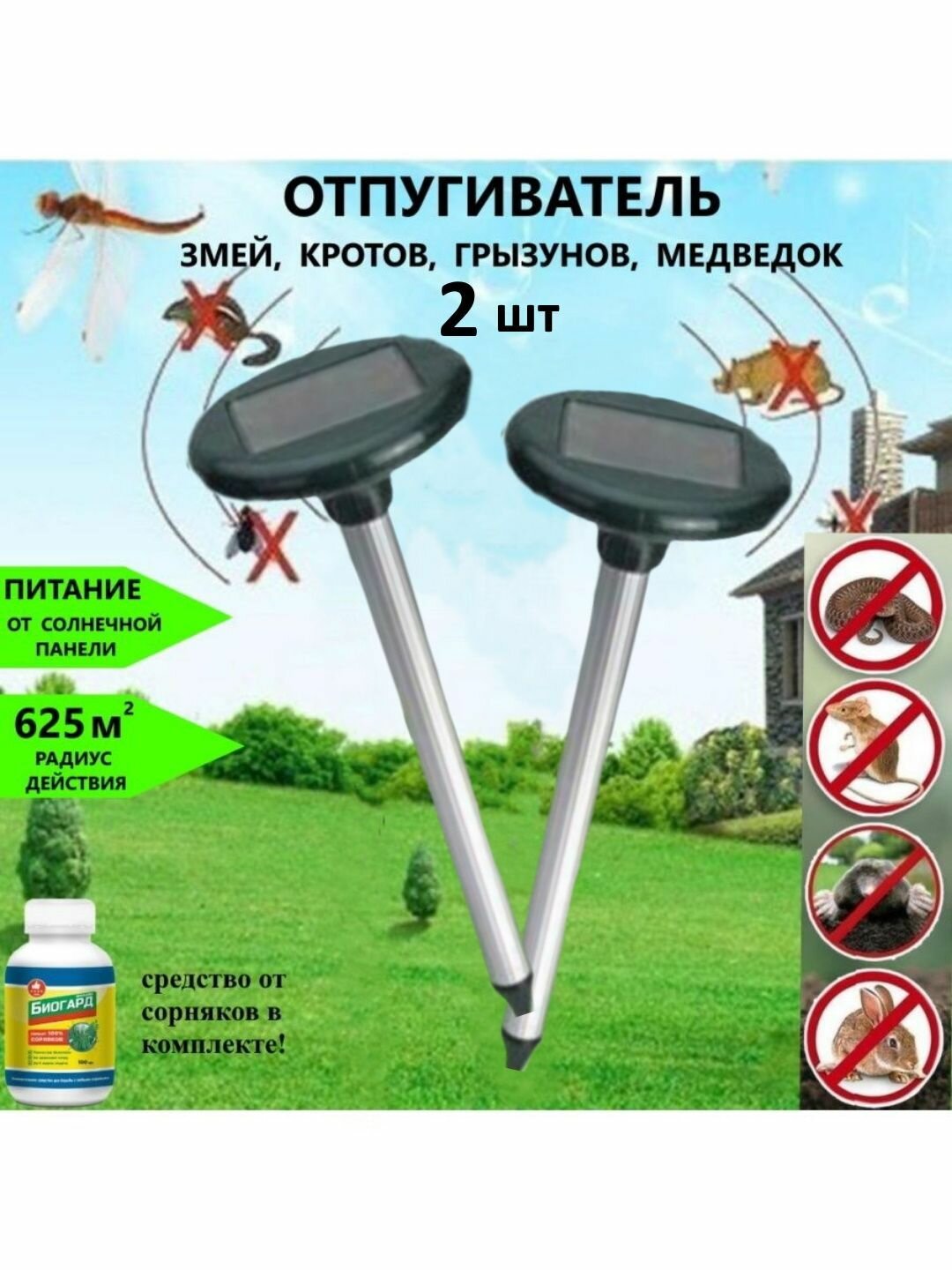Отпугиватель змей кротов и грызунов 2 шт Ю 22-60, с солнечной панелью, для сада, для дома и огорода интересное: