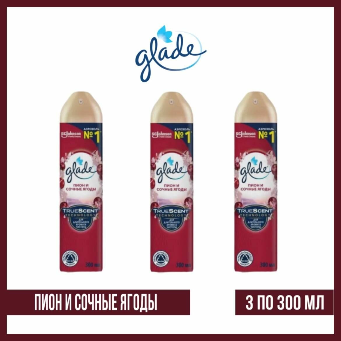 Купить Освежитель воздуха аэрозольный 300 мл GLADE "Пион и сочные ягоды", 3 шт