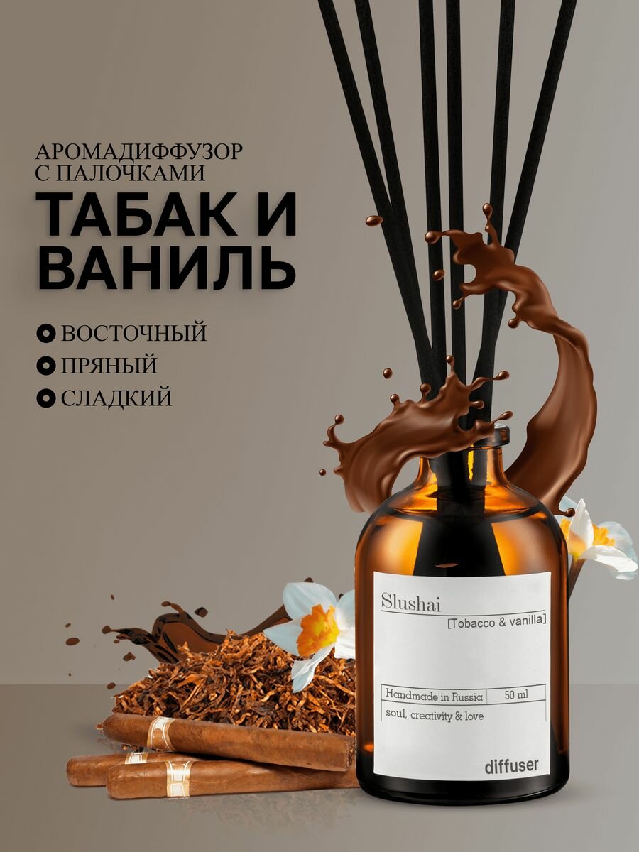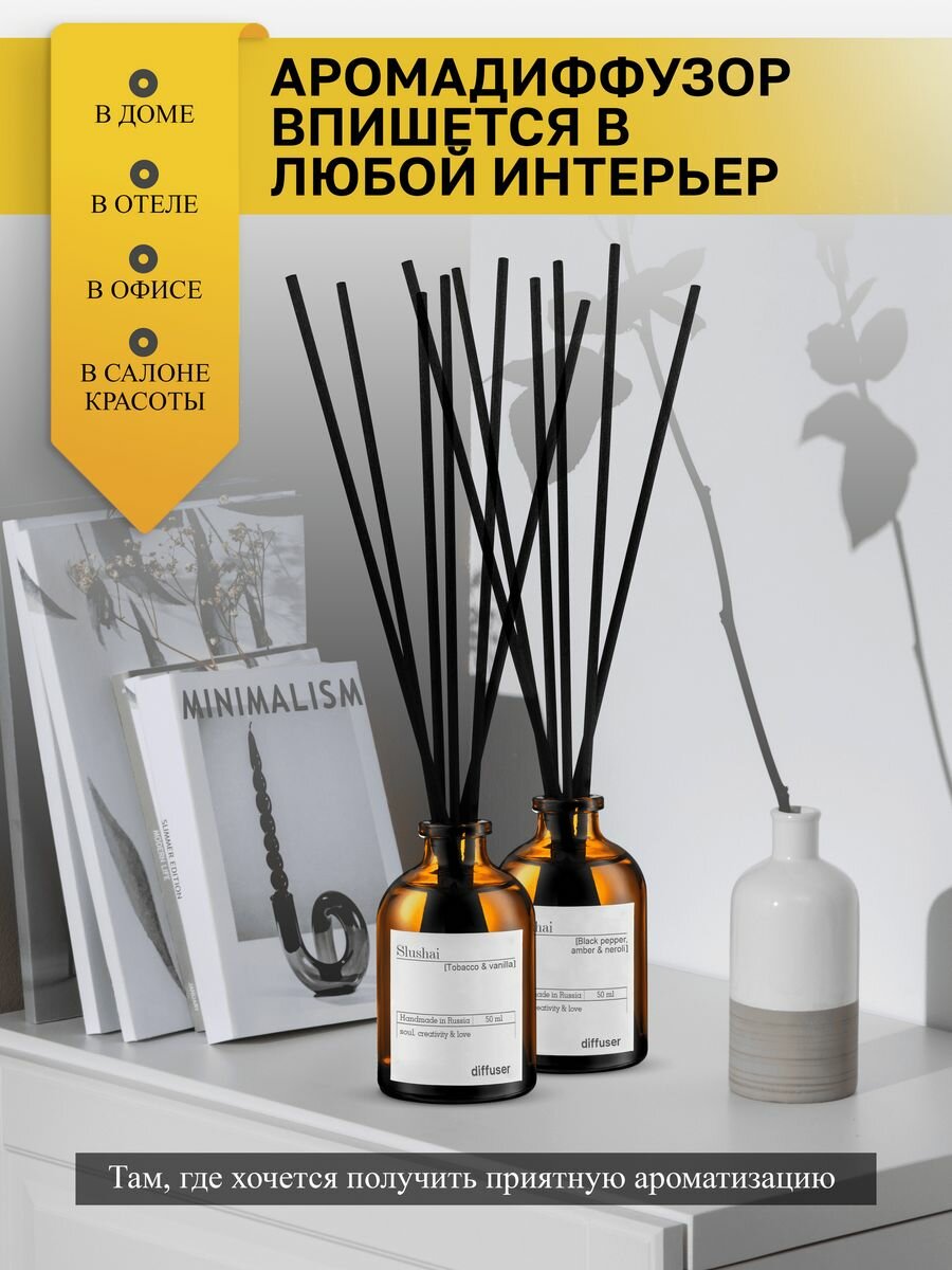 Набор ароматических диффузоров Slushai "Амбра и черный перец", "табак и ваниль"