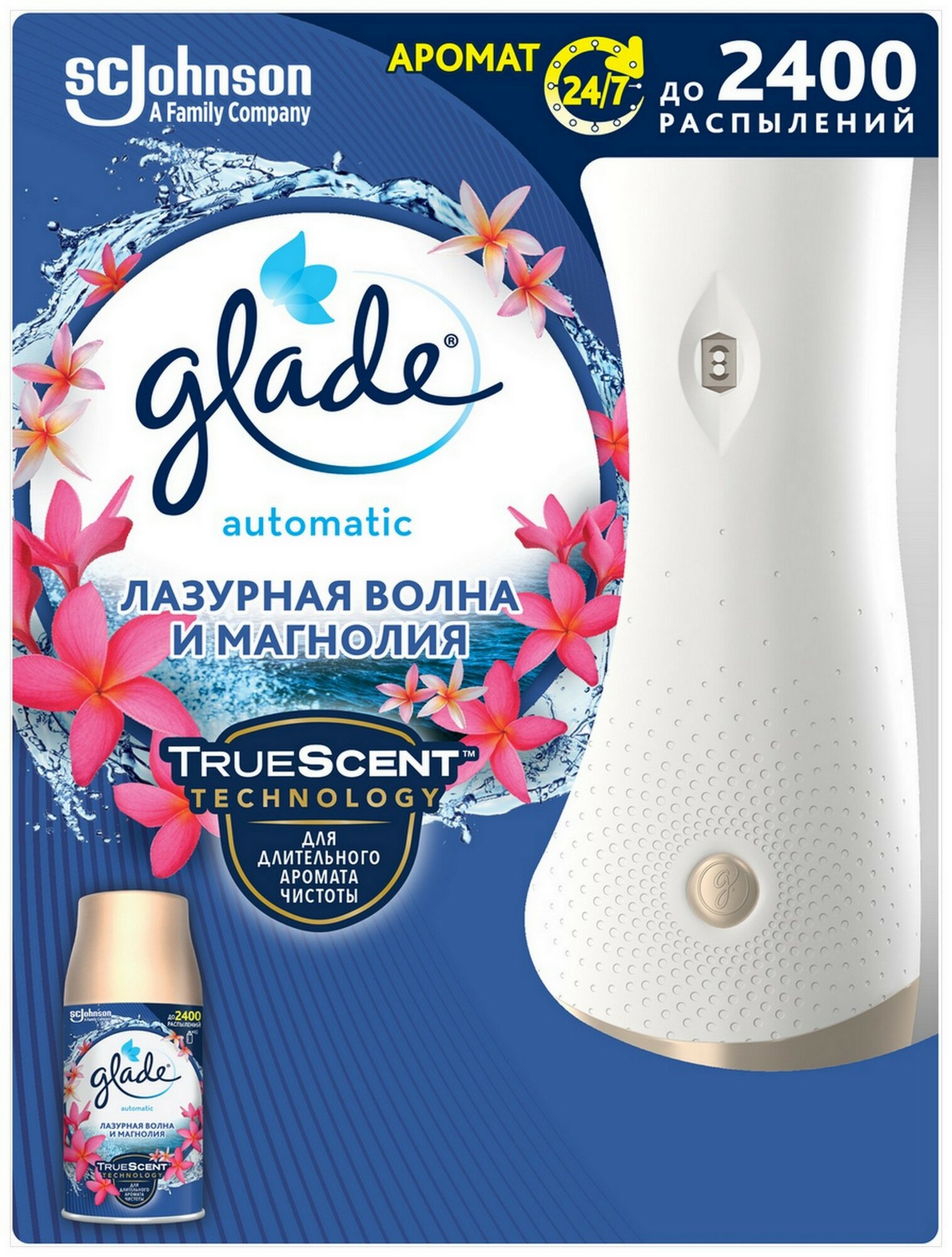 Комплект освежитель воздуха автоматич. и смен. блок Glade «Лазурная волна и магнолия», 269мл