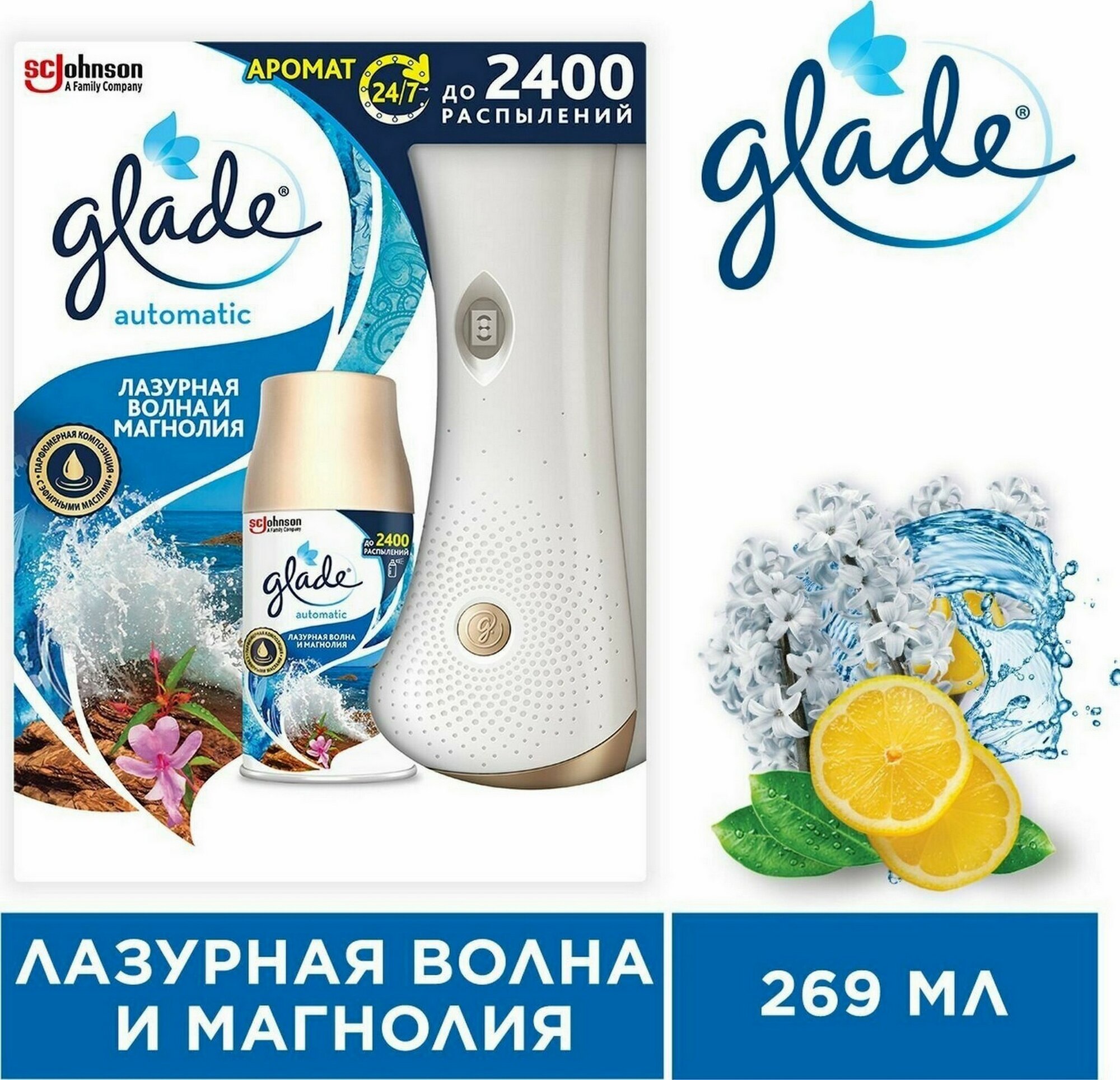 Glade освежитель воздуха Лазурная волна и магнолия, автоматический, со сменным баллоном, 269 мл, ,