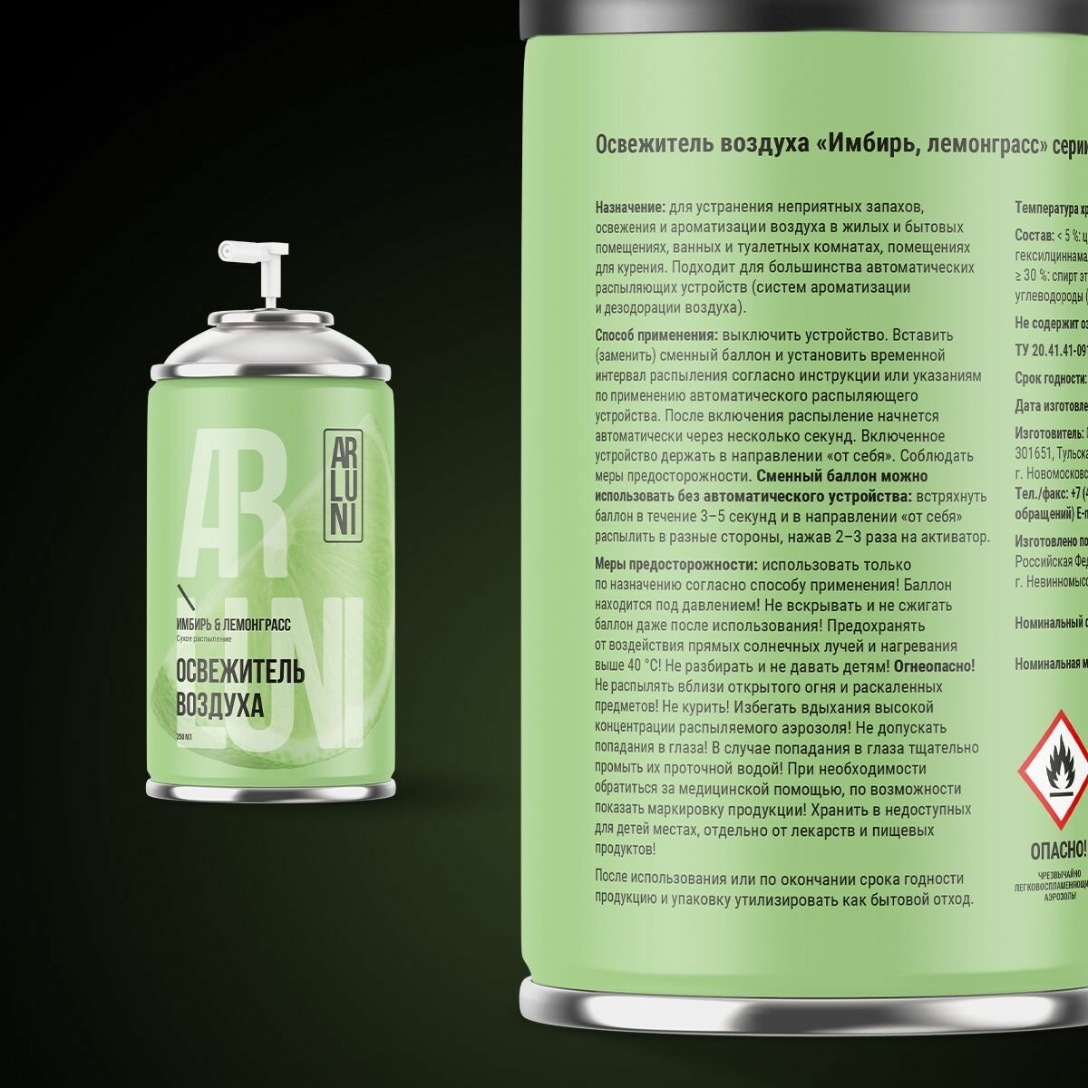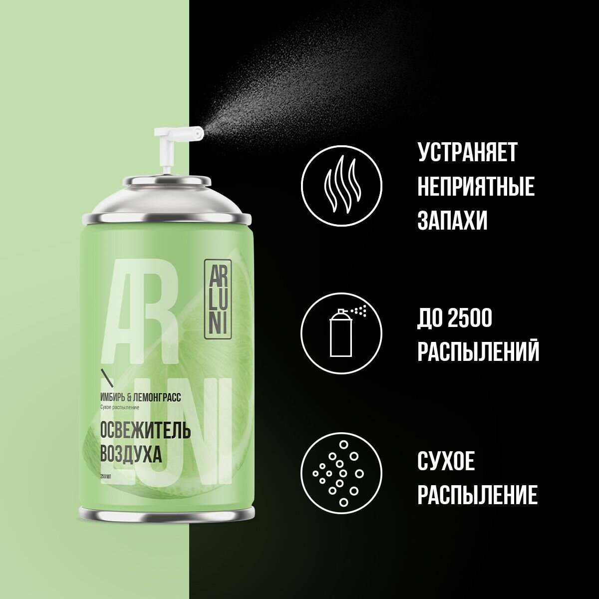 Освежитель воздуха Arluni имбирь, лемонграсс, сменный аэрозольный баллон, 250 мл интересное: