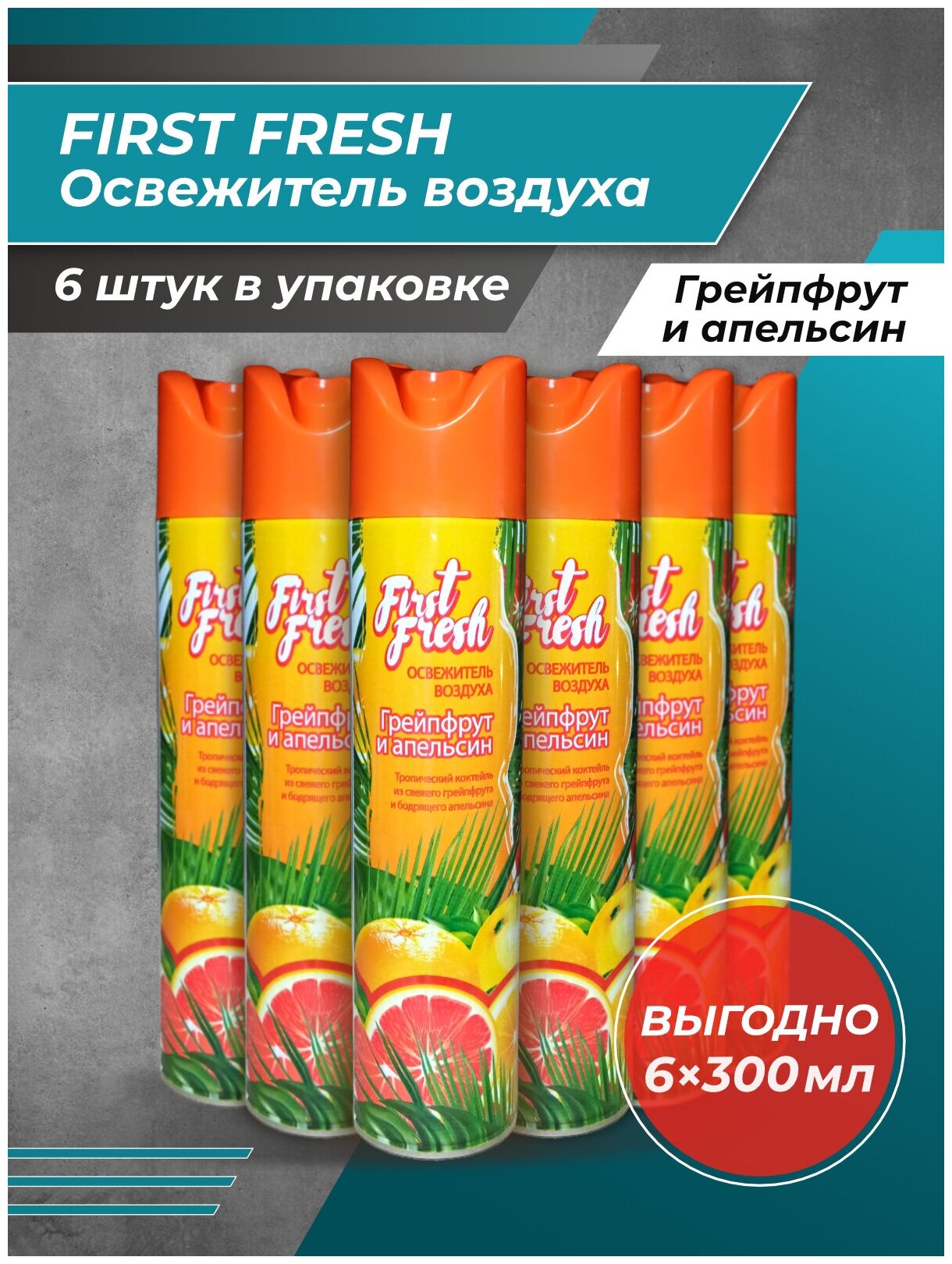 Купить FIRST FRESH Освежитель воздуха Грейпфрут и апельсин 300мл/6ш