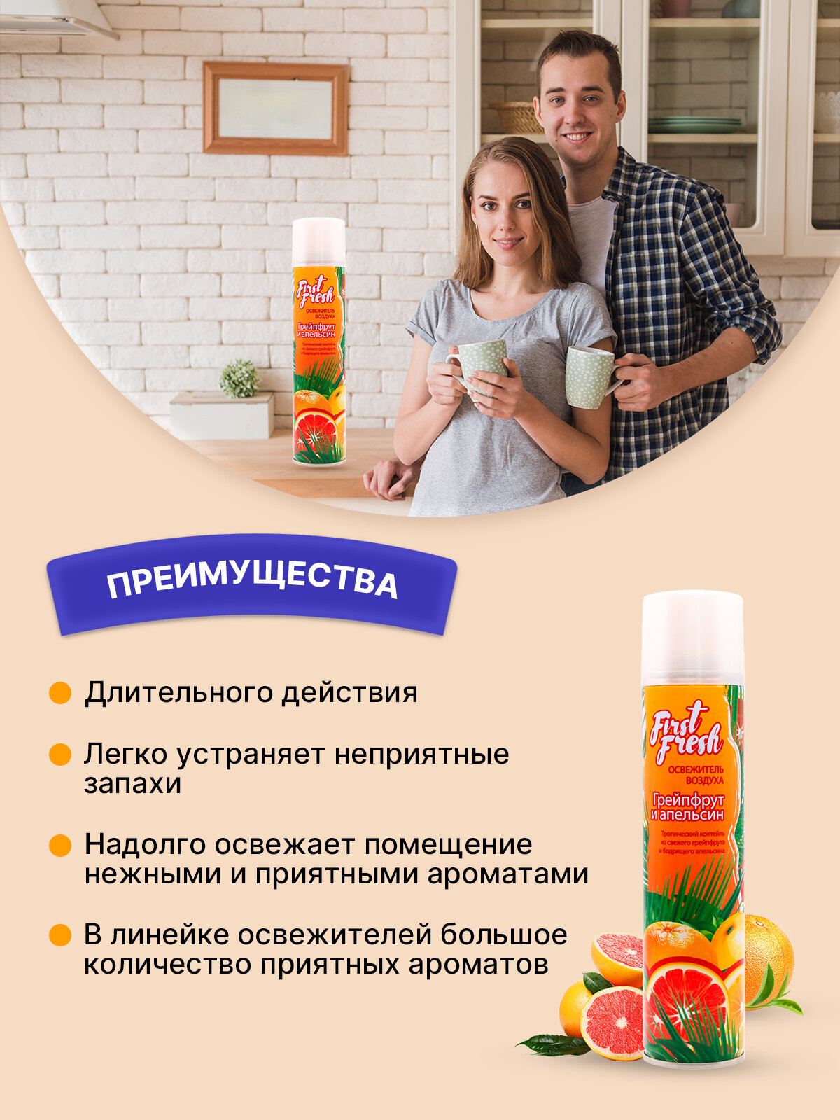 Купить FIRST FRESH Освежитель воздуха Грейпфрут и апельсин 300мл/4ш