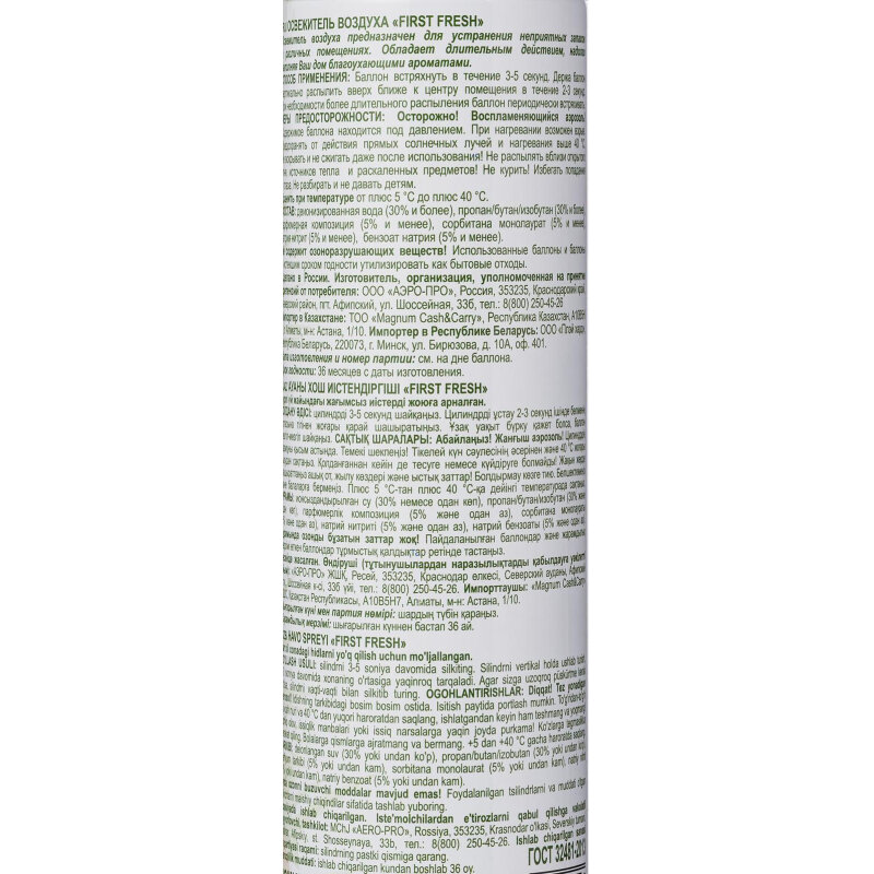 Освежитель воздуха аэрозольный First Fresh Грейпфрут и апельсин, 300мл (1725285), 12шт.