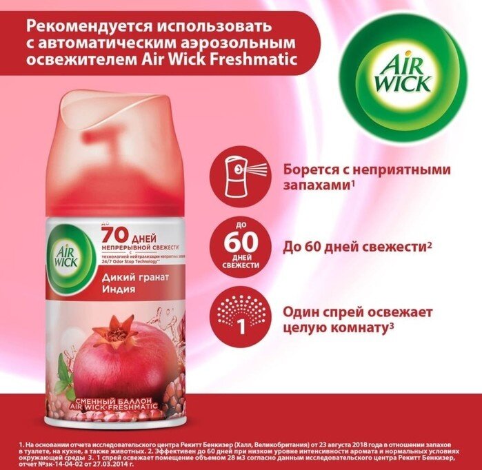 | Подробная комплектация | Сменный баллон к освежителю Аирвик Дикий гранат, 250 мл - 1 шт |