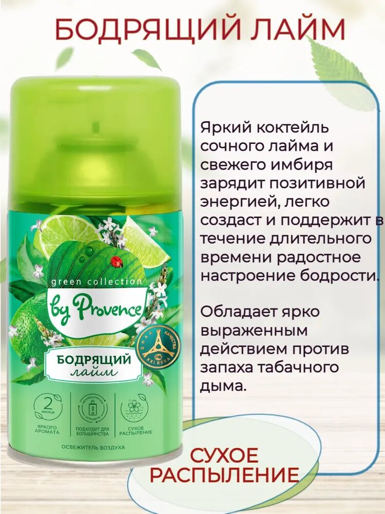 Набор 2 штуки Освежитель воздуха автоматический Бодрящий Лайм Green collection by Provence Сменный баллон для освежителя воздуха