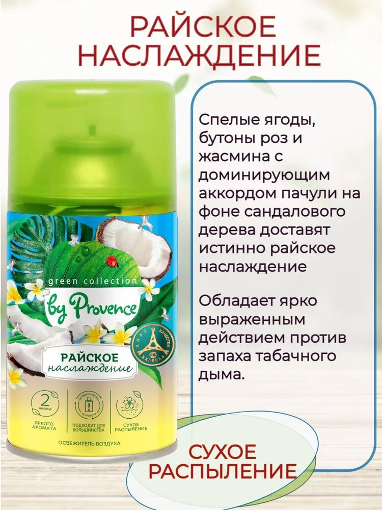 Набор 2 штуки Освежитель воздуха автоматический Райское Наслаждение Green collection by Provence Сменный баллон