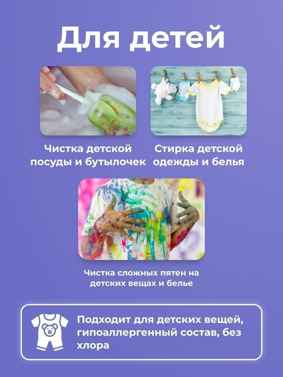 | Состав | более 30% кислородосодержащий компонент, 15-30% сода кальцинированная, 15-30% АПАВ, 5-15% мыло натуральное, менее 5% функциональные добавки |