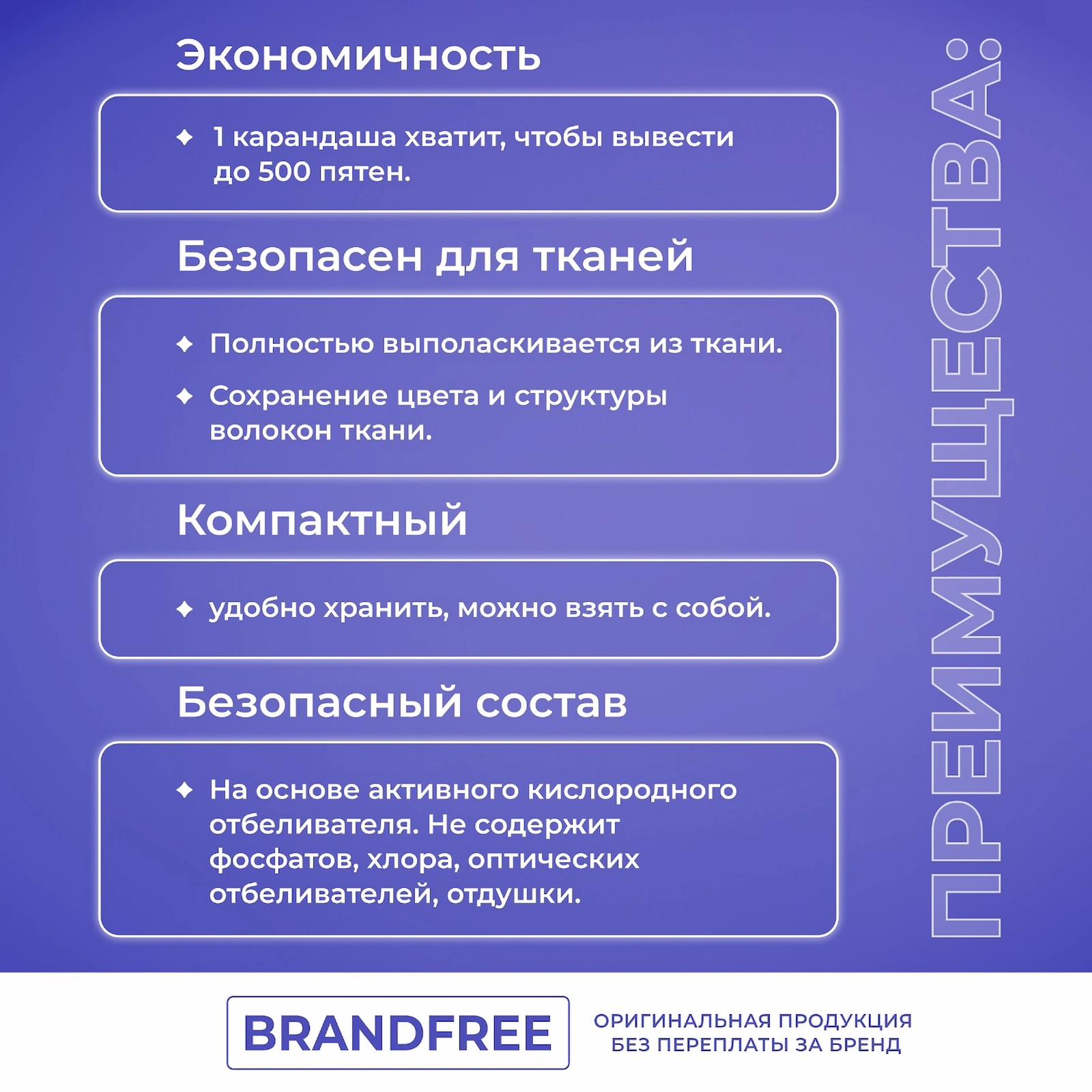 Кислородный карандаш BRANDFREE для отбеливания и удаления пятен, 35 г