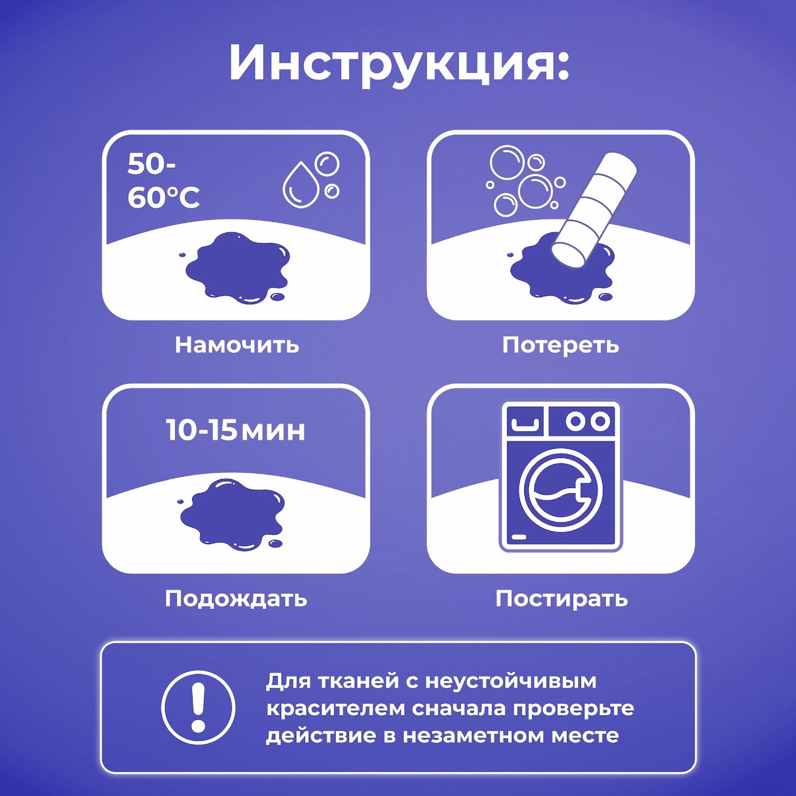 | Способ применения | Для активации экологического стирального порошка необходимо разбавить биоразлагаемый пятновыводитель кипятком (50°C и выше), после чего начнется химический процесс с выделением кислорода, способствующий расщеплению жирных пятен, устранению желтизны и любых загрязнений. |