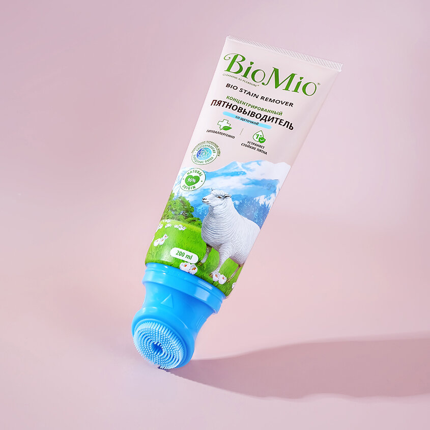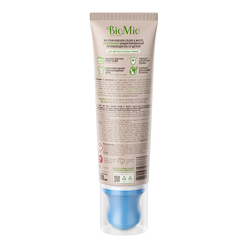 Концентрированный пятновыводитель BioMio со щеткой для цветных и белых тканей, 200 мл