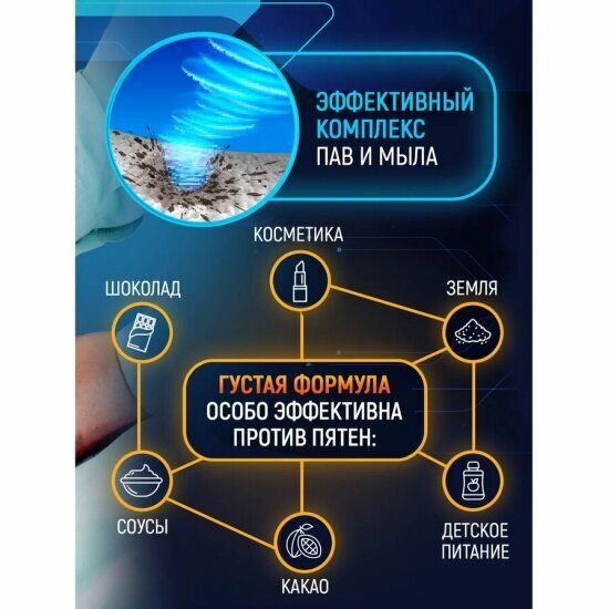 | Способ применения | Можно использовать как самостоятельный пятновыводитель, так и для предварительной обработки вещей перед стиркой. Повернуть щеточку до щелчка в положение ON. БЕЗ предварительного увлажнения ткани выдавить порцию геля на пятно, закрыть щеточку, повернув в положение OFF. Активно втирать гель щеточкой 30-40 секунд круговыми движениями. Смыть теплой водой. В случае стойких пятен нанести гель повторно и стирать одежду как обычно (ручная или машинная стирка). Можно обрабатывать любые виды ткани, подлежащие стирке (кроме шерсти и шелка). Перед применением попробовать на незаметном участке на устойчивость красителя ткани |