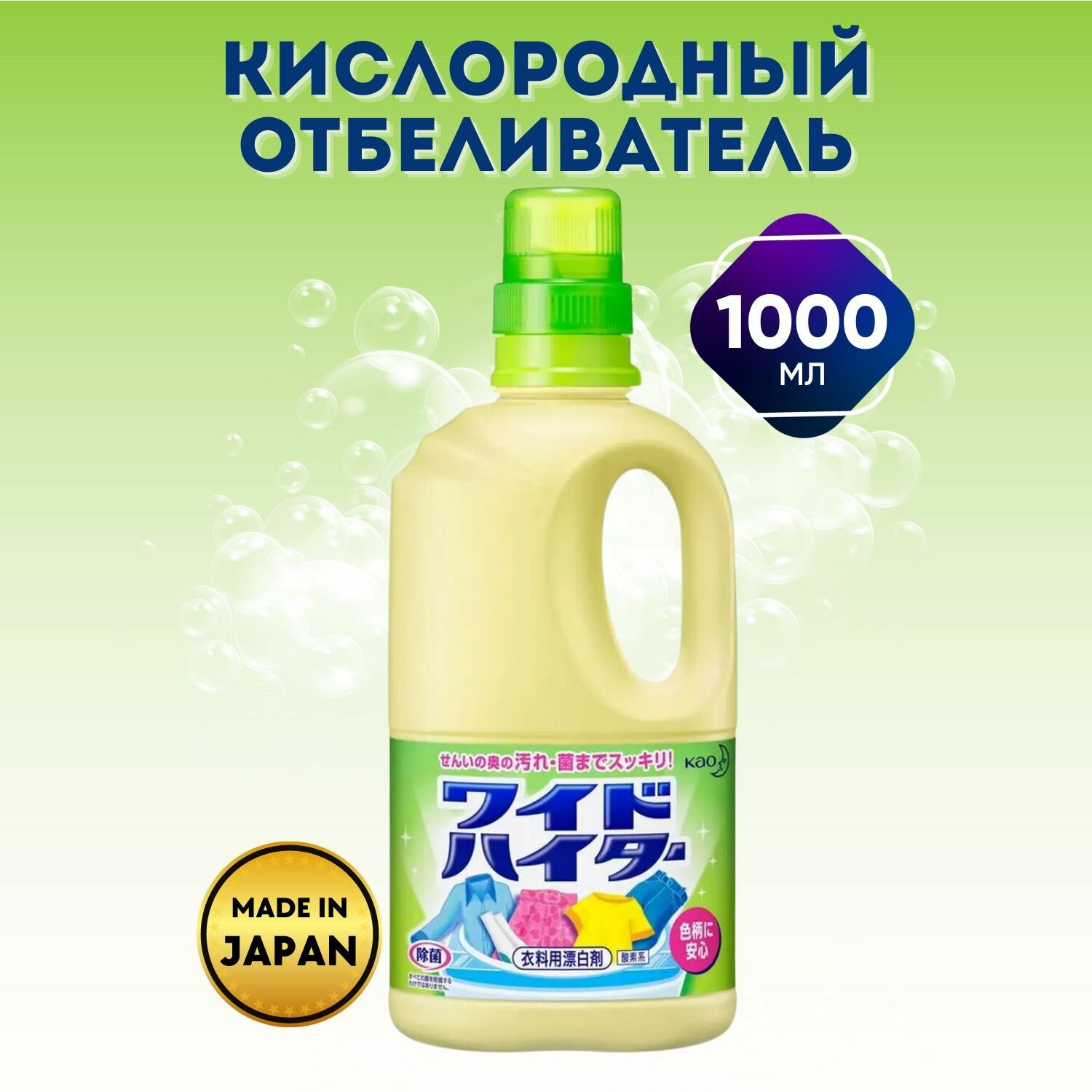 KAO Отбеливатель для цветного и белого белья кислородный. Wide haiter, 1000 мл.
