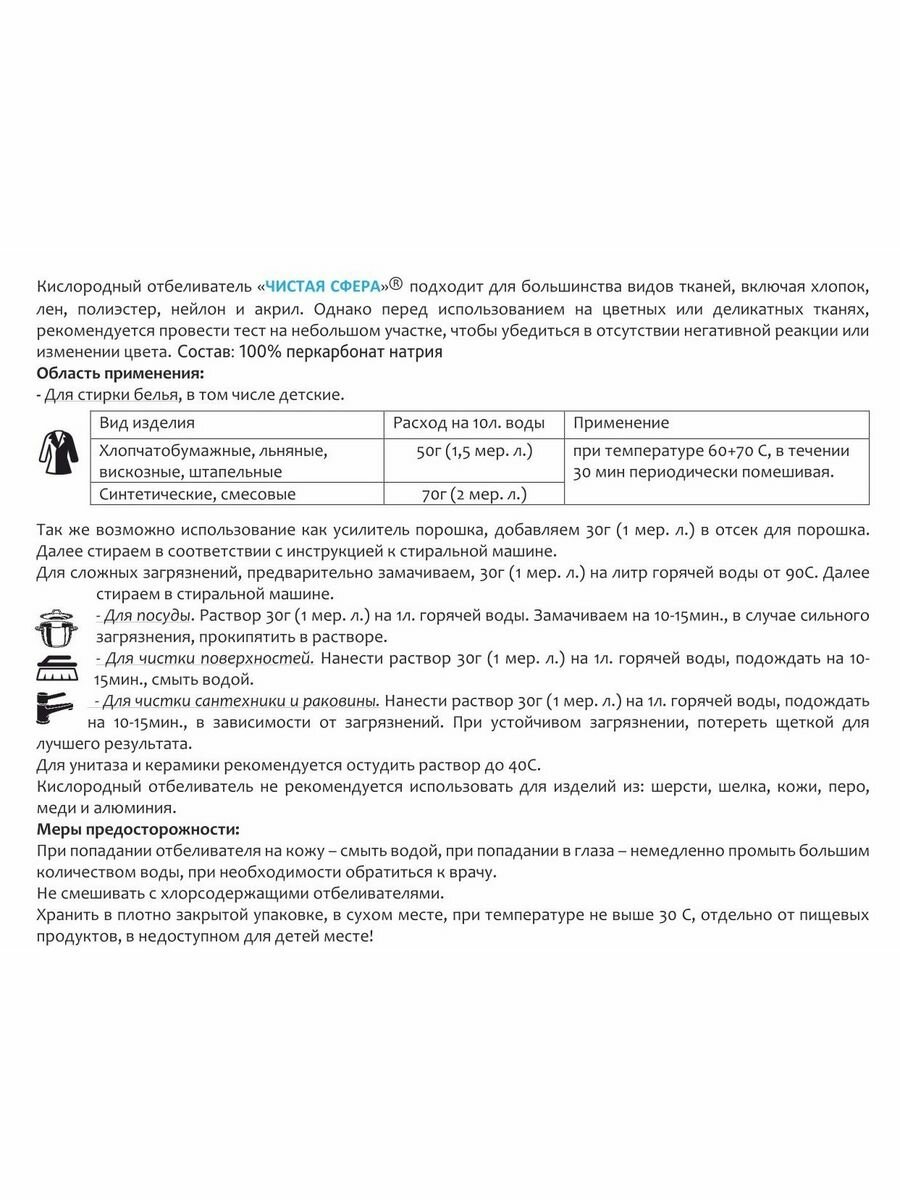 Кислородный Отбеливатель-Очиститель Пятновыводитель "Чистая Сфера" интересное: