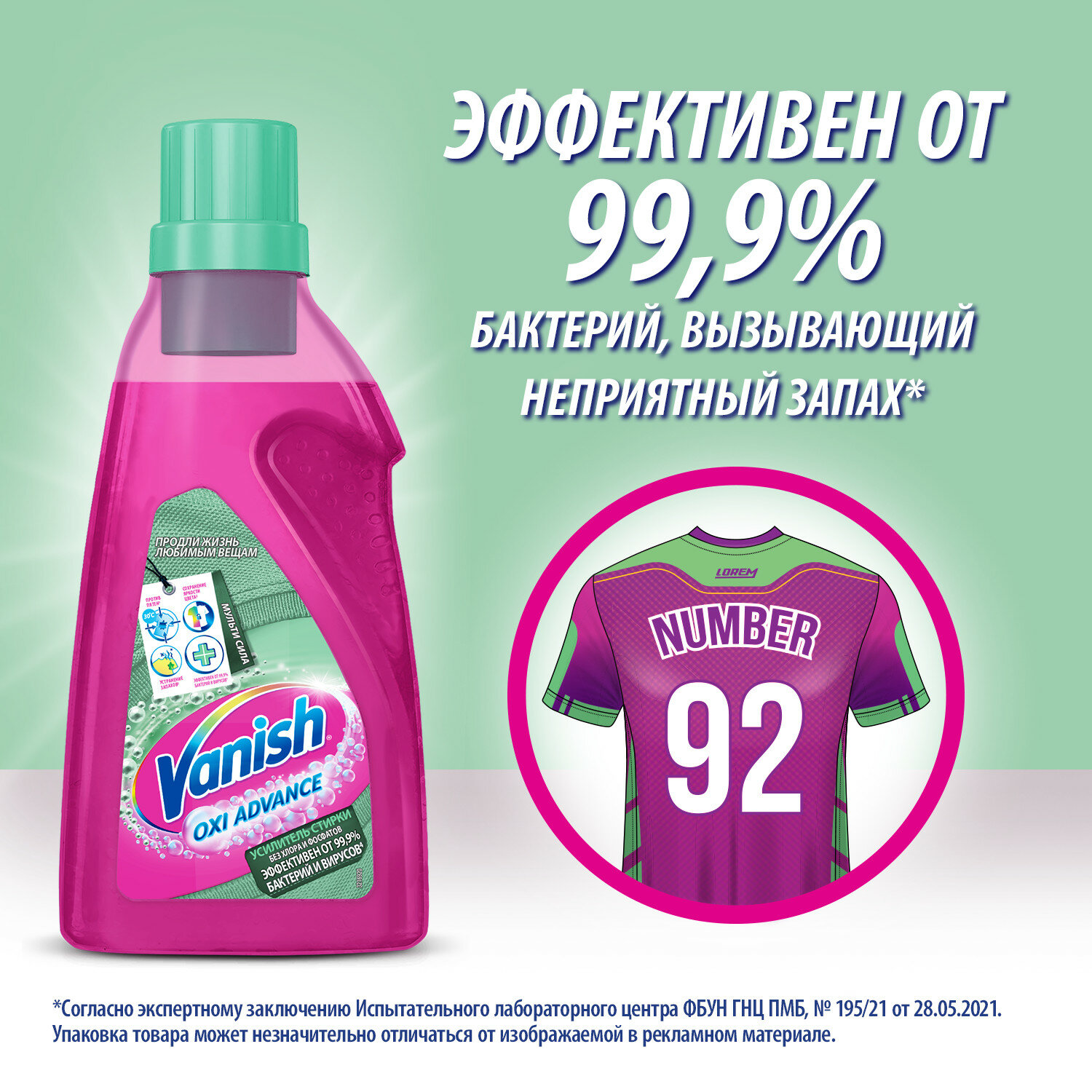 | Способ применения | предварительная обработка: 1.Вылейте 2 мл средства на пятно и потрите. 2. Оставьте средство на 5 мин. максимум. 3. После предварительной обработки стирайте как обычно, тщательно прополощите. Дезинфекция/Замачивание: 1. Добавьте 100 мл геля на 4 л воды, температурой 40 °С 2. Для дезинфекции: замочите белье на 60 минут. Для замачивания: белые изделия оставьте в растворе на 6 часов, цветные – не более чем на 1 час. 3. После замачивания стирайте как обычно или тщательно прополощите. Стирка: 1. Добавьте к вашему стиральному порошку 100 мл средства. 2. Для лучшего эффекта добавляйте Vanish при каждой стирке |