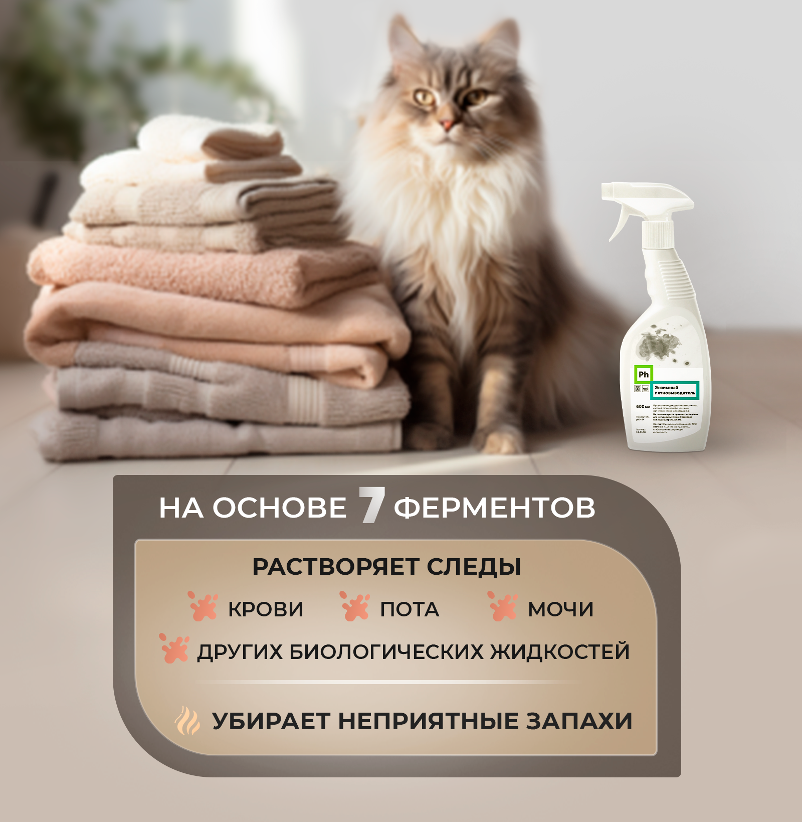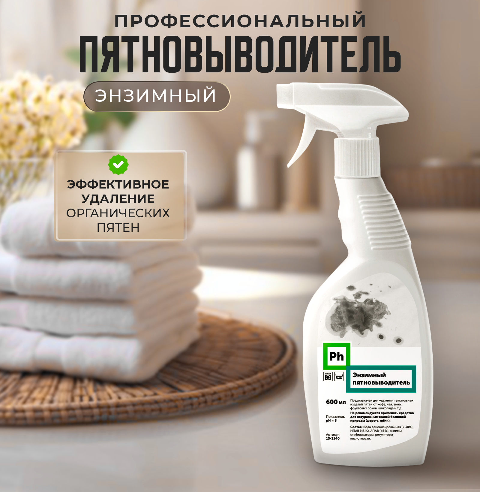 Пятновыводитель спрей энзимный для удаления пятен 600 мл Ph интересное: