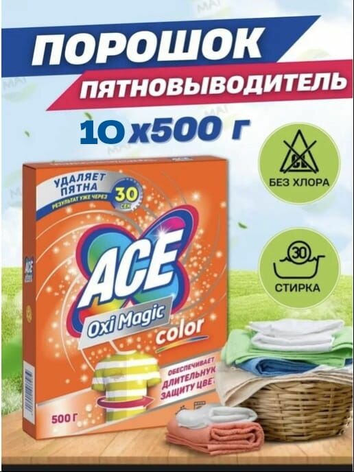 ACE 500гр порошок для цветного белья, Oxi Magic Color Пятновыводитель, 15шт
